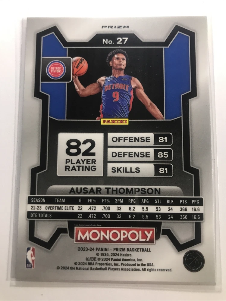 Ausar Thompson 2023-24 Prizm Monopoly ROOKIE RC PURPLE WAVE SP PISTONS