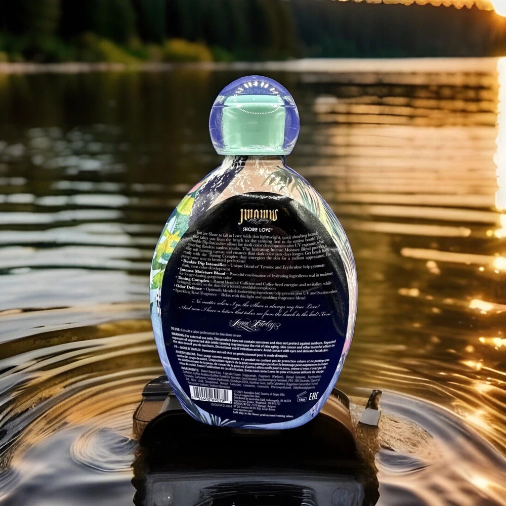 You are SHORE to fall in LOVE with this lightweight, quick absorbing formula that takes you from the beach to the tanning bed to the sunless booth! The Double Dip Intensifier allows for dark color development after UV exposure, while ensuring flawless sunless results. The hydrating Intense Moisture Blend provides a silky soft tanning canvas and ensures that dark color lasts days longer. Get beach body ready with the Toning Complex that energizes the skin fora radiant appearance. Fist pump your way to bronzed perfection! Features: •Unique blend of Tyrosine and Erythrulose help promote dark, even color development •Powerful combination of hydrating ingredients seal in moisture for longer-lasting gorgeous color •Potent blend of Caffeine and Coffee Seed energize and revitalize, while bringing vitality to the skin for a toned, youthful complexion •Optimally blended deodorizing ingredients help prevent post UV and Sunless odors