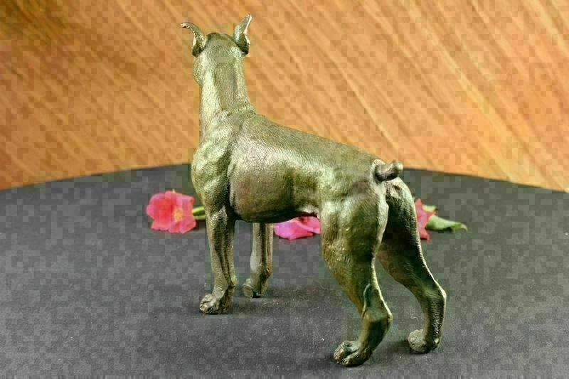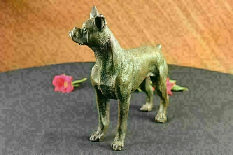 Austrian Cold Painted Bronze Boxer Dog Figure Hot Cast Animal Popular Artwork Austrian Cold Painted Bronze Boxer Dog Figure Hot Cast Animal Popular Artwork Condition : This sculpture is in a perfect condition. Bronze Dimensions: Height 7 1/2" x Width 9" Weight: 5 LBS Inventory: 19DW0642291 This lifelike bronze sculpture of an English bulldog or Boxer embodies the perfect guardian for your front door. With a stocky and powerful build, this canine stands in a wide and vigilant stance, ready to welcome you home after a long day. His large paws and well-defined muscles give him the appearance of an immovable and formidable presence. Despite his imposing figure, this charming sculpture captures the essence of a loyal and lovable pet. The intricate details in his face, expressive eyes, and floppy cheeks make him irresistibly cute. His presence exudes both strength and warmth, showcasing the artist's exceptional craftsmanship. Created by the artist Moigniez, this bronze masterpiece not only serves as a symbol of protection but also as a timeless piece of art. Whether displayed at your front door or in your living space, this sculpture is a testament to the enduring bond between humans and their four-legged companions. Bring home this faithful guardian today and add a touch of canine charm to your surroundings. Boxer Dog Bronze Metal Statue Sculpture Collectible Decor Signed Art 8\" x 9\" DW-064 Video will open in a new window Using the eBay App? Paste link into a browser window: [isdntekvideo] Shipping Terms : Most of our items are shipped via USPS (United States Postal Service) mail or UPS. Most orders are shipped within 24-48 hours of purchase. Please be aware that not all items are available for USPS shipping due to size and weight. We do ship to Hawaii, Alaska, Canada, Puerto Rico, APO/AE, and U.S. Virgin Islands, however, an additional charge may be required. Please contact us before making any purchases in these areas. For Non-USA customers, you may be responsible for all duty, tax, brokerage fees that may be due upon delivery (shipping costs cover freight charges only). We also ship internationally. Please refer to the "Shipping and Handling" chart for the rates for each area. Payment : We accept just about any form of payment. PayPal, Master Card, Visa or American Express credit cards. Money orders, cashiers checks, and even personal or business checks. For governmental institutions, we will also accept a purchase order. Please understand that for personal or business checks we have to wait for the check to clear (usually 7 days) before shipping. Condition : New Detailed Hand Crafted Hot Cast Bronze Satisfaction Guaranteed. This is Stock Photo, Slight Color Variation!! Listing and template services provided by inkFrog
