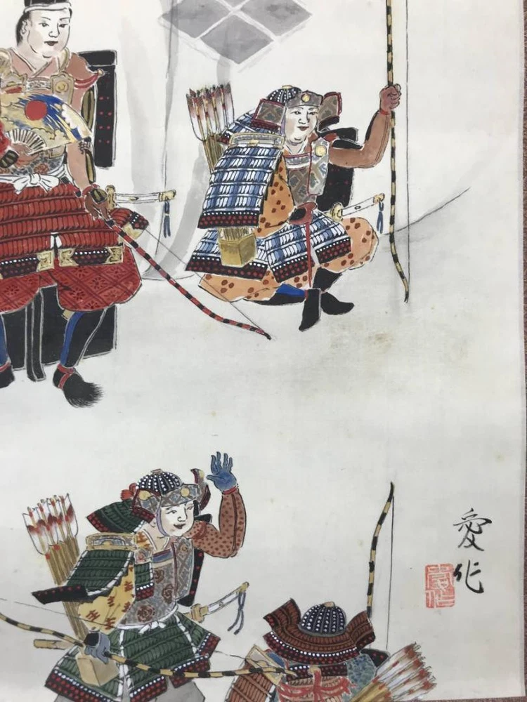 Auth Japanese Samurai Battle Scene Kakejiku (Hanging Scroll) Hand-Painted Silk Description Shipping from JAPAN. Condition: Used Takebayashi Ai Details: Born in Mie Prefecture in 1949 (Showa 24), studied Japanese painting under the Maruyama Shijo School, held numerous solo exhibitions and received awards at various exhibitions. Specializes in flowers and birds, resides in Kyoto Prefecture. 【Condition of the Work】 The main paper is a hand-painted silk work. The main paper has some dirt and stains. The mounting is generally in good condition. There are numerous glue stains on the back. Comes with a paulownia wood box (double box). Scroll size: length 57 inches (145 cm) × width 28 inches (72 cm). "For fragile items, I will ensure careful packaging and ship them with insurance for added protection. In the unlikely event that an item arrives broken, I will issue a full refund. Kindly take photos of the broken outer box and the broken item upon opening, as these will be required for processing the claim. Rest assured, I will address the matter with the utmost sincerity. Thank you for your understanding." Returns We accept returns within 30 days of delivery, but please note that the customer is responsible for the cost of return shipping. Our return policy guarantees 100% satisfaction. If you receive an item that is significantly different from its description on our website, please contact us by email to request a refund. In such cases, you will need to return the item to us before we can process your refund. International Buyers - Please Note: Please note that import duties, taxes, and other charges are not included in the item price or shipping cost. These charges are the buyer's responsibility. We kindly advise you to check with your country's customs office to determine what these additional costs will be before placing a bid or making a purchase. Please be aware that such charges are typically collected by the delivering freight (shipping) company or when you pick up the item. Therefore, please do not mistake them for additional shipping charges. We comply with all applicable US and international laws and regulations regarding the declared value of merchandise. Please note that we cannot mark items as "gifts" or declare a lower value than their actual price. Such practices are prohibited by law, and we are committed to adhering to ethical and legal standards. If you cancel your order, we reserve the right to charge a cancellation fee. If there is an additional charge for shipping to your remote address, we will inform you and charge accordingly. We appreciate your understanding and cooperation, and we are happy to assist you with any questions or concerns you may have about international shipping and customs regulations. Thank you for your interest in our products and services.