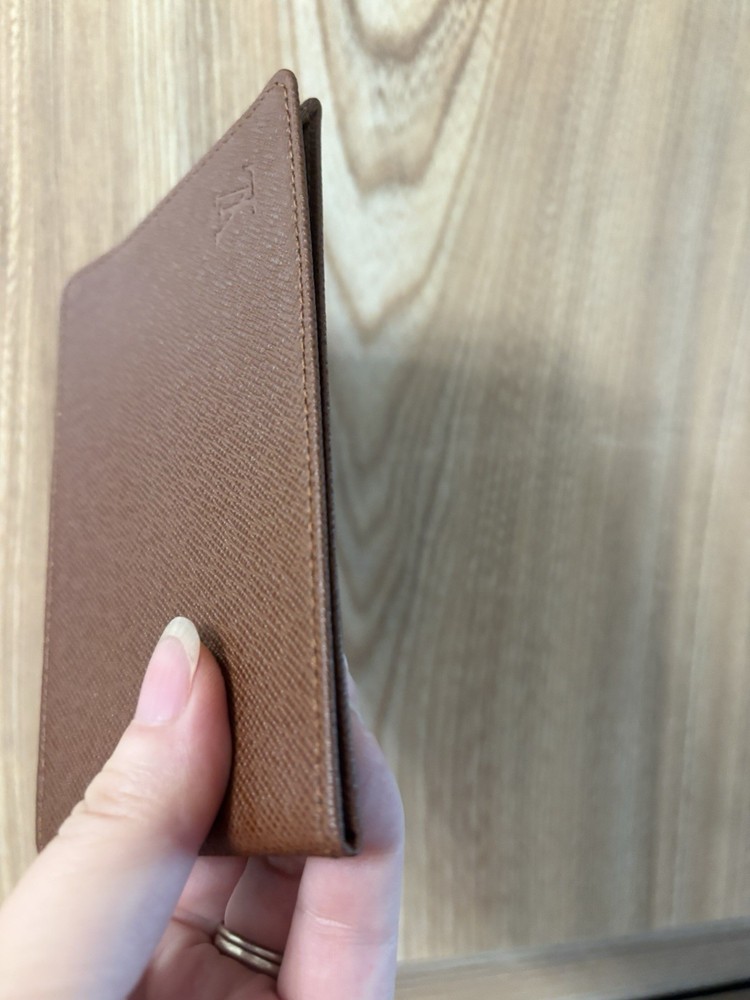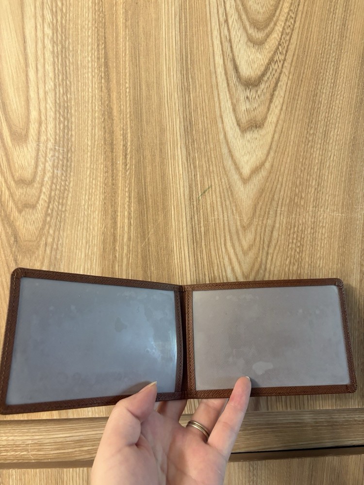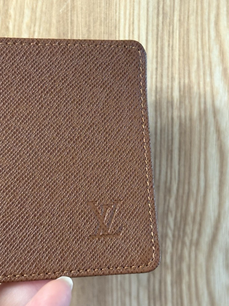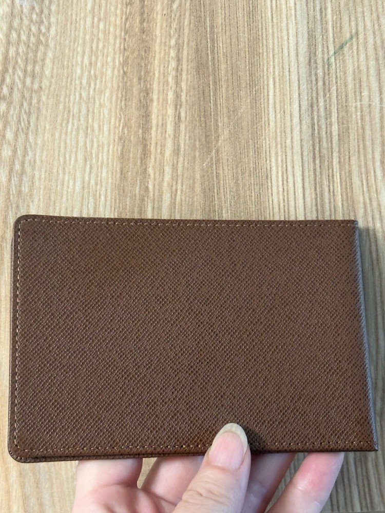 Authentic Louis Vuitton brown Taiga I’d card holder in very good condition. Has date code. Minor plastic scuff. Made in France.