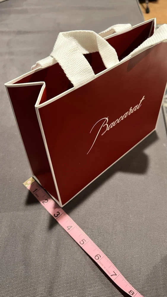 Elevate your gift-giving experience with the Authentic Brick Red Baccarat Shopping Tote. Crafted from high-quality paper, this small-sized gift tote is adorned with a chic Red X character, adding a touch of sophistication to your presents. Suitable for various occasions, these gift bags are as versatile as they are stylish. The tote's dimensions, a generous 8.5 x 6.5 x 2.5 inches, provide ample space for your goodies, ensuring they are well-protected and presented with elegance. Whether it's a birthday, anniversary, or just because, these Baccarat-branded totes are the perfect choice for wrapping your gifts in a way that leaves a lasting impression.