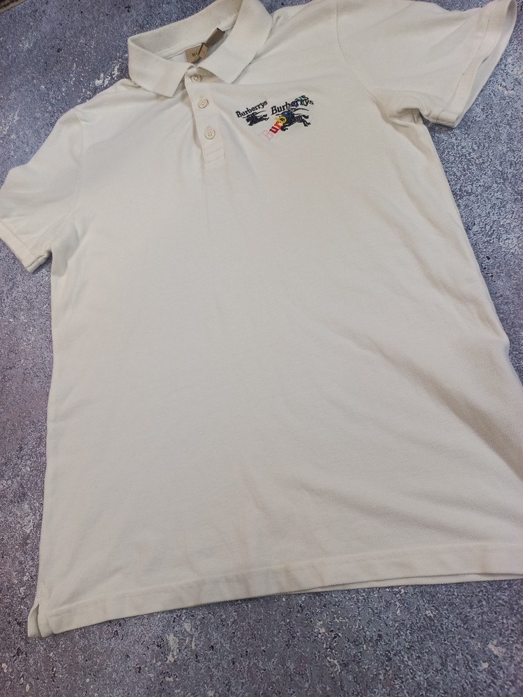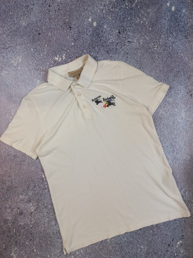 Add a touch of timeless British style to your wardrobe with this authentic Burberry men's polo shirt. Made from soft, high-quality cotton, it features a classic collared design with a rare embroidered racing-themed Burberry logo on the chest. A perfect choice for fans of iconic fashion with a unique twist. Product Details: Brand: Burberry Size: S (Small) Color: White Material: 100% Cotton Made in: Thailand Condition: there is a small stain Features: Embroidered Burberry logo with colorful race flags Button-up placket Classic fit Additional Information: β 100% Authentic π Fast Shipping π¦ Carefully Packed Feel free to message me with any questions!