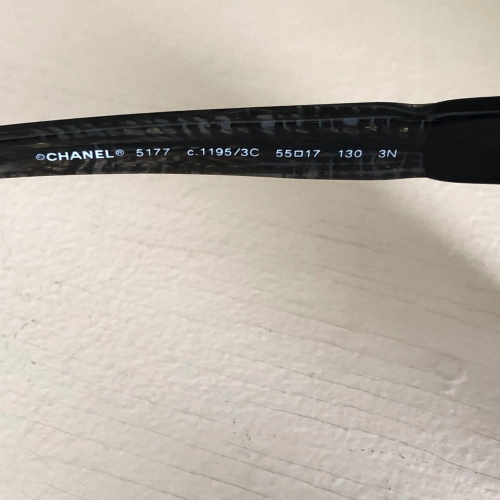 Authentic CHANEL Acetate Tweed Effect Sunglasses 5177 Black with Case 100% Authentic Pre-owned / EXCELLENT CONDITION These ultra-chic sunglasses have a tweed effect engraved in a black frame and polarized lenses with a small silver Chanel CC logo at the hinges. Made in Italy Length: 5.25" Height: 2.00" Width: 5.50"