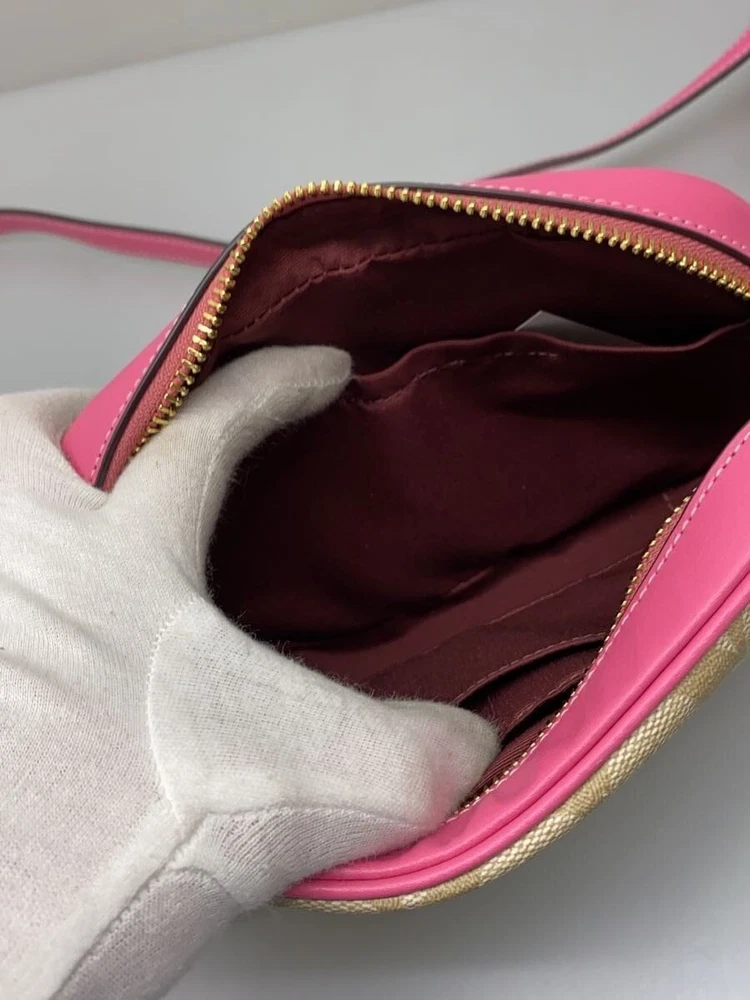 Description Auth COACH Mini Jamie Camera Bag In Signature Canvas C9926 Canvas Khaki Pink F/S Used - Condition This item has some signs of use. Please check the photos. - Size and Specifications Style Number: C9926 Measurements: Length: 7.5" Height: 5.25" Width: 2.25" Materials: Signature coated canvas and smooth leather Fabric lining Strap: Adjustable strap with 22.75" drop for shoulder or crossbody wear Features: Outside open pocket Inside multifunction pocket Two credit card slots Zip closure Fits all phone sizes up to an iPhone X and Samsung S7 Edge Introducing Jamie, an updated version of our Jes Camera Bag Additional Details - Thank you very much for your interest. - Please note that this is a pre-owned (used) product. - As it is also available for sale in stores, the condition may change slightly over time. - There may be minor damage or dirt not visible in the photos, and some accessories may be missing . - We manage our inventory carefully, but in rare cases, the product may sell out . - Depending on your monitor or device, the color may appear slightly different from the actual product. - If you have any questions or concerns , please feel free to contact us anytime. Shipping Information FREE SHIPPING - The product will be shipped from Japan . - Shipping Method: Japan Post or DHL or Fedex - Delivery Period: Usually takes 2–3 weeks (Delivery may be delayed due to global events, weather conditions, customs processes, or other unforeseen circumstances. ) Important Notes - Import duties, taxes, and charges are Not included in the product price or FREE SHIPPING cost. - These charges are the buyer's responsibility . - Please check with your country's customs office to determine what these additional costs will be prior to bidding or buying.