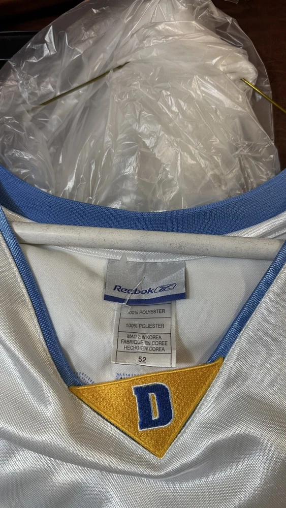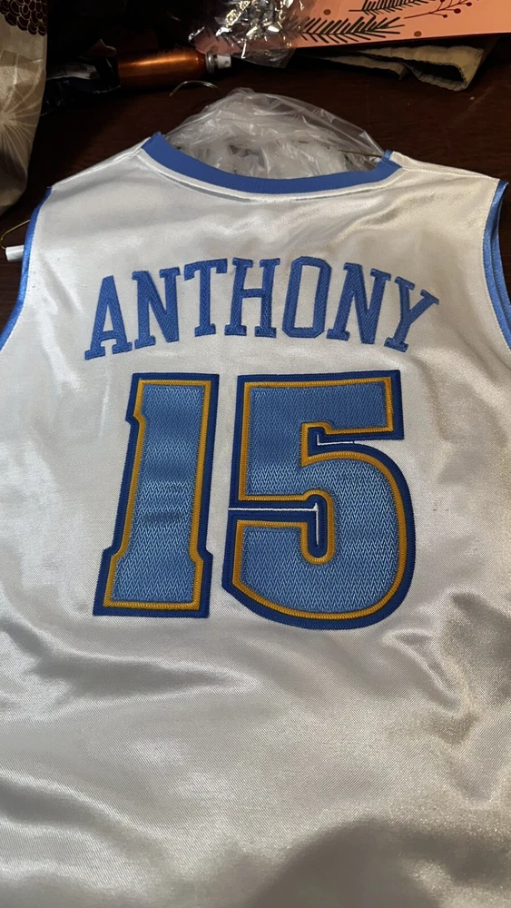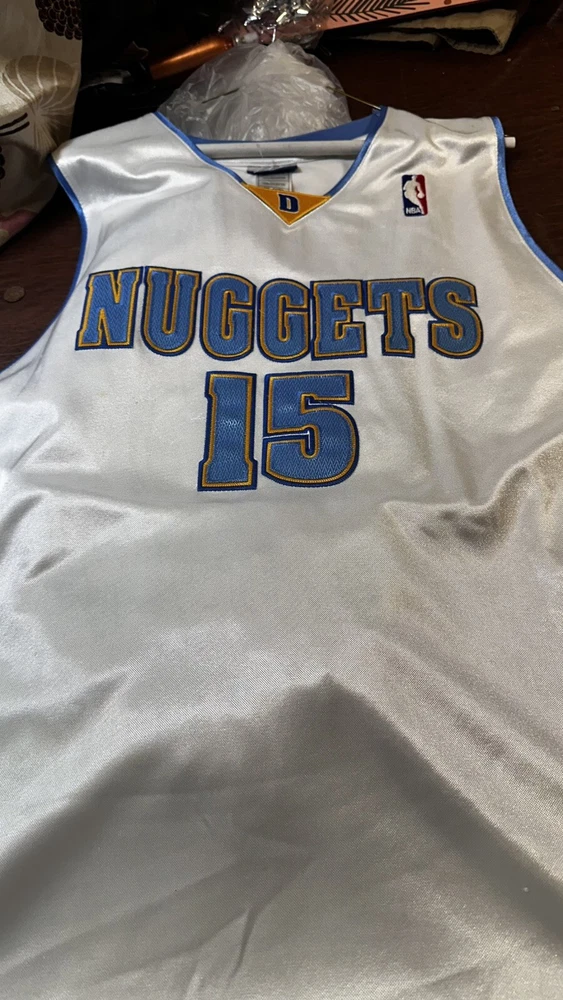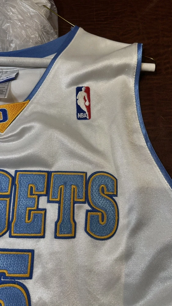 The product is an authentic Reebok jersey of Carmelo Anthony from the Denver Nuggets in size 52. It is officially licensed by the National Basketball Association (NBA) and designed for men. The jersey is white in color and made to impress .This rare item is a must-have for any fan of Carmelo Anthony or the Denver Nuggets, perfect for showing support during basketball games or as a collector's item.