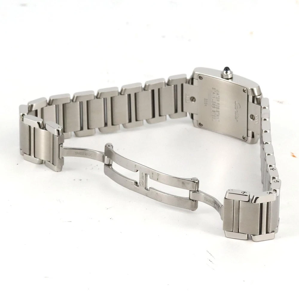 Authentic Cartier Tank Francaise SM W51008Q3 SS Quartz #270-003-985-3308 Authentic Cartier Tank Francaise SM W51008Q3 SS Quartz #270-003-985-3308 Condition Rank A New Brand new Rank S Acquired from individual in not used condition. Rank A Excellent condition. Slightly used. Rank B Fair condition. There are some scratches, stains. Rank C Obviously used. There are certain scratches, stains. Accessories Genuine Box Warranty ActualSize Case diameter: 20x25mm Max Wrist size: 17cm AdditionalInfo Quartz water resistant Brand Cartier Carat CenterStone Clarity Color Dial Colors: Silver Roman ConditionDescription ConditionRank A Cut Features Gender Ladies' Material Case: SST Bracelet: SST Model MPN W51008Q3 Repaire Size Case diameter: 20x25mm Max Wrist size: 17cm Stone Style Weight Description There are some minor scratches, but it is in good condition. We have performed battery replacement and exterior polishing. Accessories may have scratches, stains, or signs of aging. Luxury Bags Wallets & Accessories Jewelry Watches Please Read Before Order About Customs Import duties, taxes, and charges are not included in the item price or shipping cost. These charges are the buyer's responsibility. Please check with your country's customs office to determine what these additional costs will be prior to bidding or buying. We are not acceptable for false declaration of prices and any other falsified information. Please pardon us if some items are sold out We sell on multiple venues such as eBay, and our website/physical retail stores. As a result, orders will be fulfilled on a first-come first-served basis. We apologize for the inconvenience and we thank you for your understanding. You will be hearing from us if an item is already sold elsewhere in a timely manner. Because of the time difference, please expect delay in response. Condition The damages are described and shown with the pictures as much as possible, but we are not able to cover all of the damages on our items. Ranking of Condition is only for the item not included packaging stuffs, guarantee card and tags. Payment & Shipping Payment We accept PayPal only. Cancelation Please pay within 3days after you purchase. Your order will be canceled if we don’t hear from you. Shipping and Handling We only ship to PayPal registered address after payment is cleared by PayPal. Handling time varies between 3-10 business days depending on items location. All of our items will be shipped/delivered by FedEx unless otherwise notified. About Customs Import duties, taxes, and charges are not included in the item price or shipping cost. These charges are the buyer's responsibility. Please check with your country's customs office to determine what these additional costs will be prior to bidding or buying. We are not acceptable for false declaration of prices and any other falsified information. Return Policy Returns Please contact us within 3 days after receiving the item if you would like to return the item. If you wish to return, please contact us first through messages. Returned item must be kept in good condition for full refund. Buyer need to pay for return shipping. We are not acceptable for money back for duties paid. Size Table About Size The size of the item is measured by our professional stuff. The size of item is Japanese size. 1cm ≈ 0.39 inch Ring Size About Authenticity About US 100% Authentic Guarantee Komehyo is the largest reseller of pre-owned luxury brand items in Japan. Our expert appraisers are highly experienced and we do not deal with fake/counterfeit products. Learn more about us: We are listed on the Tokyo Stock Exchange. Anti-counterfeiting measures Komehyo is a member of the Association Against Counterfeit Product Distribution(AACD). AACD’s goal is to create a sound market for genuine brand products by eliminating counterfeit and fraudulent products from the market.