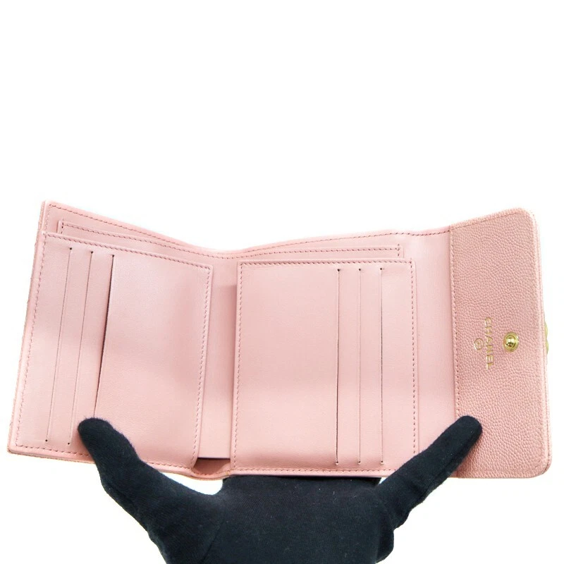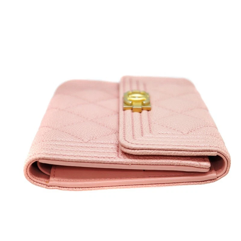Authentic Chanel Boy Caviar Leather Pink Trifold Wallet with Box