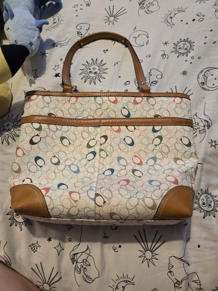 Authentic coach signature Tote in amazing condition slight signs on wear on the bottome leather but it is old/vintage