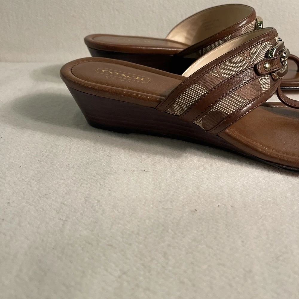 Authentic Coach Virginia A8567 Womens Brown Low Wedge Sandal Size 8.5