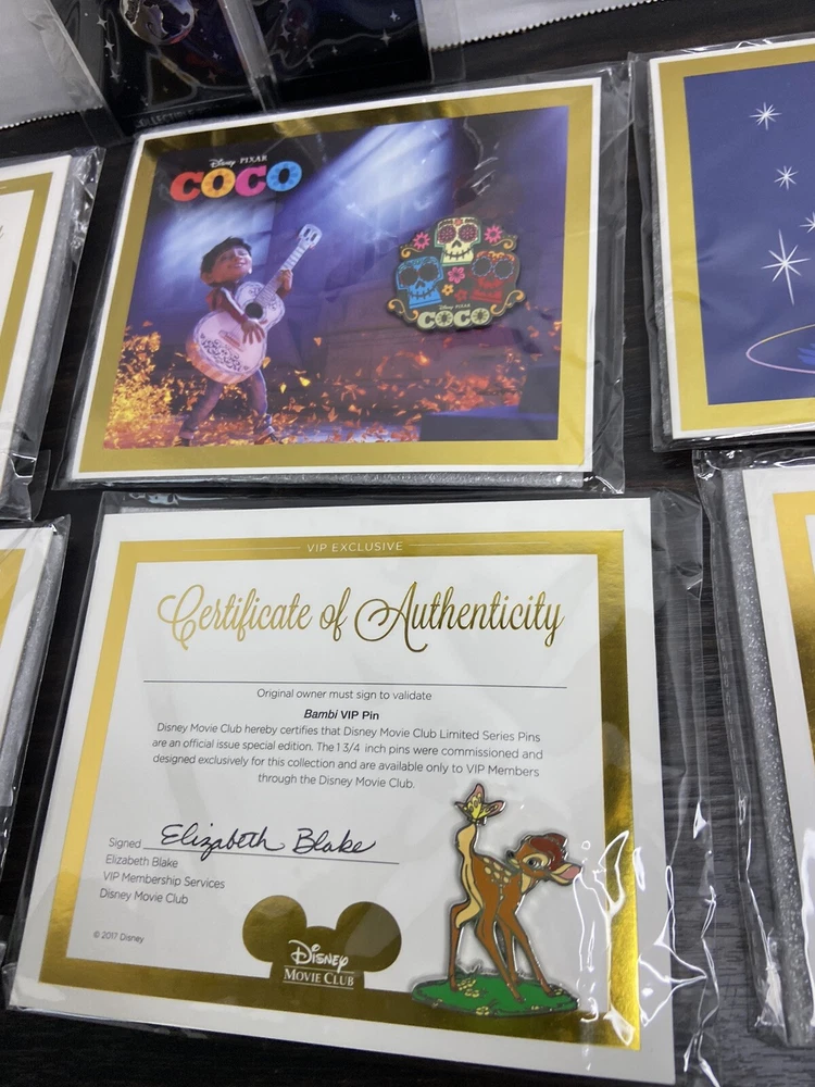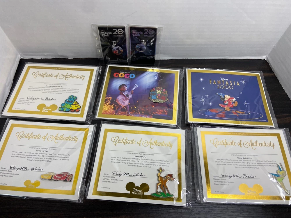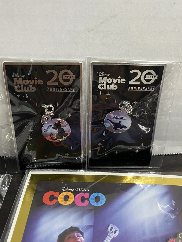 Immerse yourself in the magic of Disney with this exclusive lot of 6 Disney Movie Club (DMC) VIP pins, each accompanied by a charming pendant featuring beloved characters Groot and Buzz Lightyear. These pins are a must-have for collectors and fans, showcasing an array of vibrant designs inspired by the enchanting world of Frozen and the creativity of Pixar. Each piece in this collection stands out with its unique theme and high-quality craftsmanship, emblematic of the contemporary Disney era (1968-Now). Though the country of origin remains a mystery, the allure of these pins is undeniable, making them a prized addition to any Disneyana enthusiast's treasury.