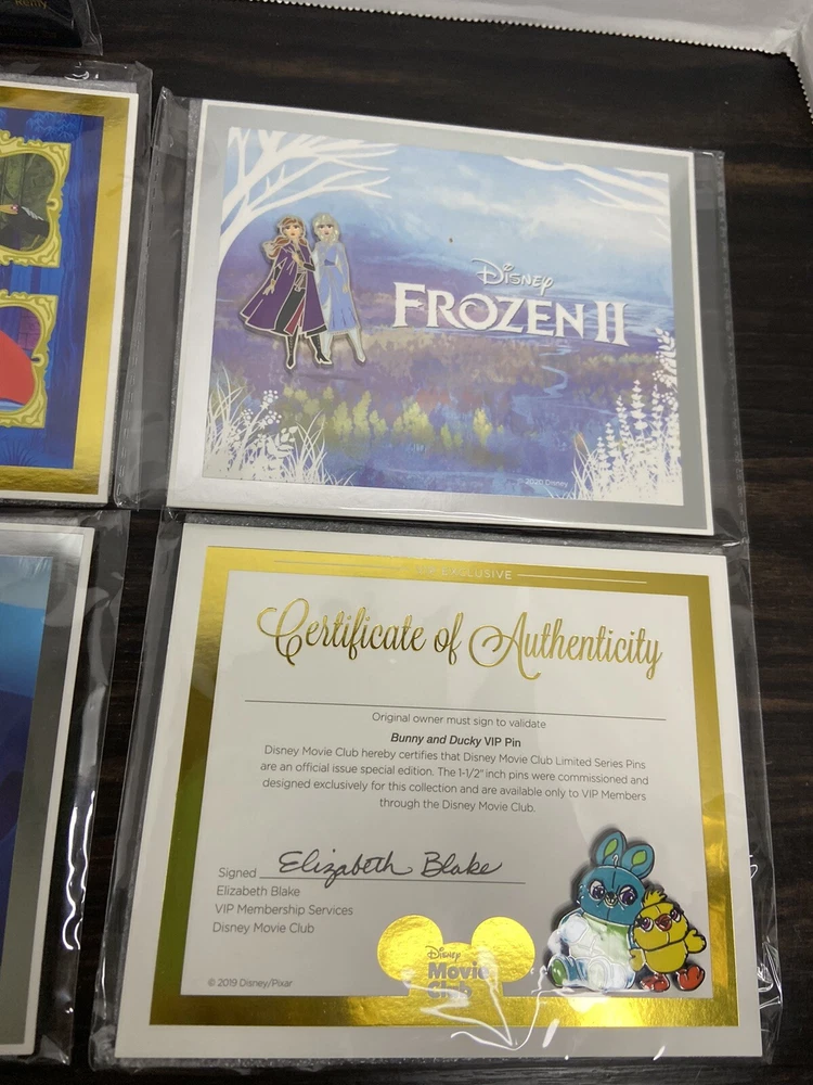 Delve into the enchanting world of Disney with this exclusive lot of 6 pins and pendants, a treasure trove for collectors and fans alike. Each piece celebrates the magic of Disney Movie Club, featuring beloved characters from Frozen and Ice Age. These VIP pins are a testament to contemporary Disney memorabilia, showcasing the care and detail the brand puts into its collectibles. Whether you're a seasoned pin trader or a novice collector, this set promises to be a highlight of your Disneyana collection. The pins and pendants, with their rich symbolism of the Pixar theme, are a perfect homage to the storytelling that has captivated audiences for generations. Add a touch of Disney's modern era charm to your ensemble with these unique and cherished pieces.
