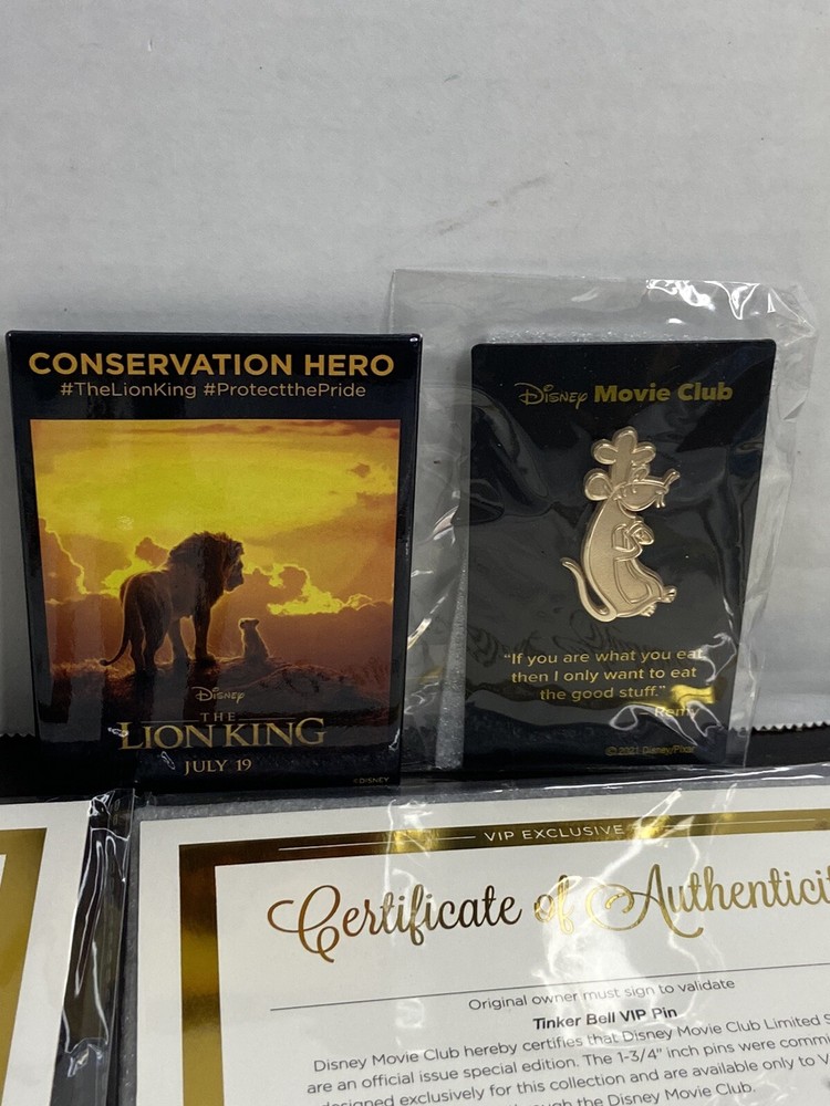 Authentic Disney Movie Club DMC VIP Pins Lot of 6 with Pendants Groot Tinker