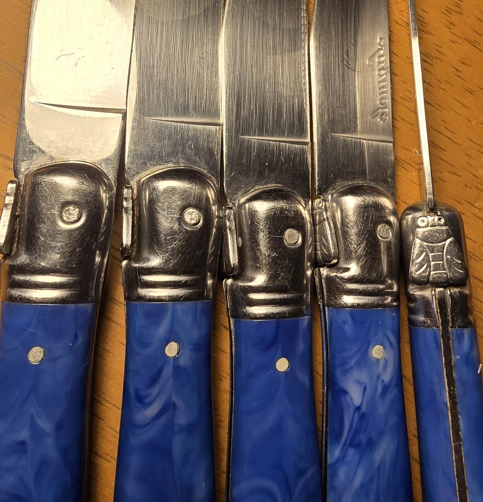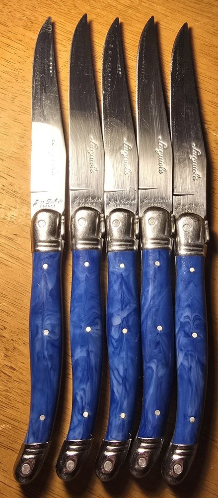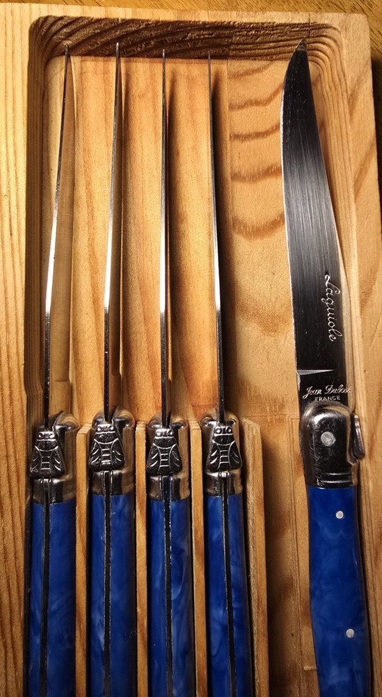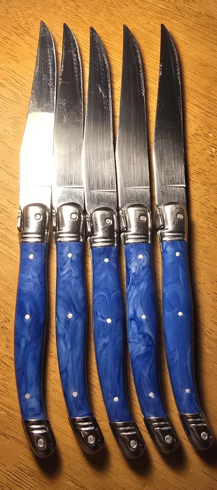 Ideal for Every Occasion: Straight edge blade. Whether you're hosting an elegant dinner party or simply enjoying a cozy family meal at home, these versatile table knives elevate any dining experience with their traditional Laguiole design and superior performance Timeless French Craftsmanship: French Home’s set of Laguiole Connoisseur stainless steel steak knives features a comfortable to hold, three-rivet curved handle with the iconic bee emblem on the bolster, symbolizing Napoleon, and the French monarchy * Knives sold as pictured. Items may need sharpening depending on preference.