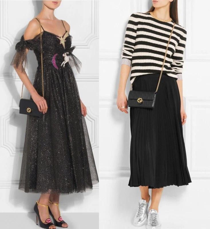 This stunning GUCCI crossbody bag is a must-have! The black pebbled leather is luxuriously soft, and the iconic Interlocking G logo adds instant elegance. The detachable chain strap makes it versatile for day or night, while the compact size fits essentials perfectly. The craftsmanship is impeccable—truly a timeless piece worth every penny. Love how lightweight yet durable it feels, and the gold accents give it that perfect high-end touch. Definitely a head-turner!