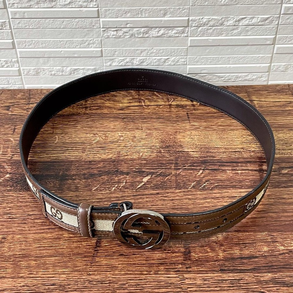 This GUCCI belt is a must-have! The brown canvas and leather combo looks stylish and high-end, with clean stitching and a sturdy interlocking buckle. The condition is excellent—just minor wear that doesn’t affect its luxurious look. Fits perfectly for a 28-30" waist and feels premium. Shipping from Japan was smooth, and it arrived as described. Absolutely worth it for a timeless designer piece!