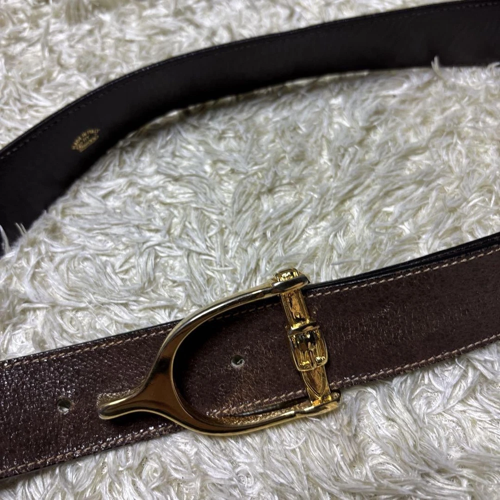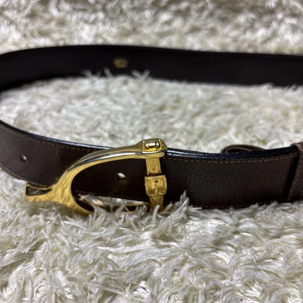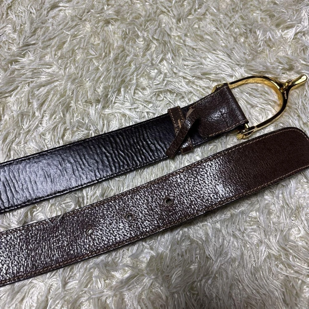 This vintage GUCCI belt is a timeless piece—rich brown leather with gold hardware, made in Italy, and still in great shape despite minor wear. The unisex design fits well, and the sizing is flexible with multiple holes. Perfect for adding a luxe touch to any outfit. Ships from Japan, so check for included accessories before buying. A fantastic find for the price!