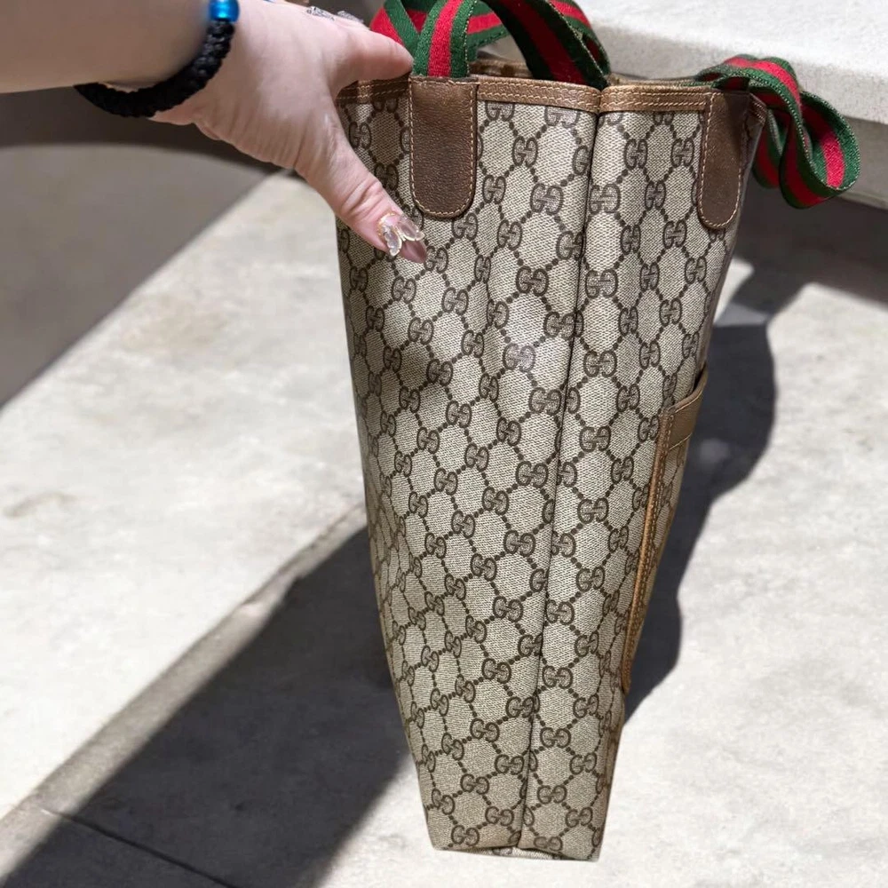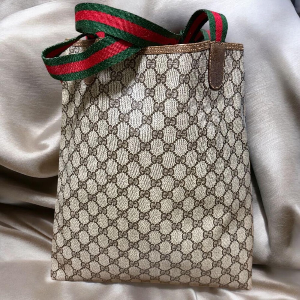 Exterior Material: Canvas Style: Tote Accessories: NA Handle/Strap Color: NA Bag Width: See Description Customized: No Hardware Color: NA Pattern: NA UPC: Does Not Apply Lining Material: NA Vintage: No Character: NA Closure: NA Brand: Gucci Product Line: NA Bag Height: See Description Lining Color: NA Size: See description Bag Depth: See Description Exterior Color: Beige Department: Women Handle/Strap Material: NA gtin13: Does Not Apply