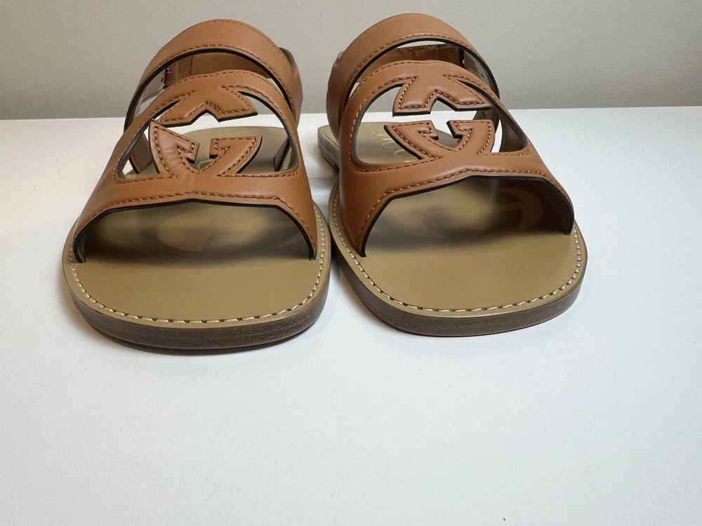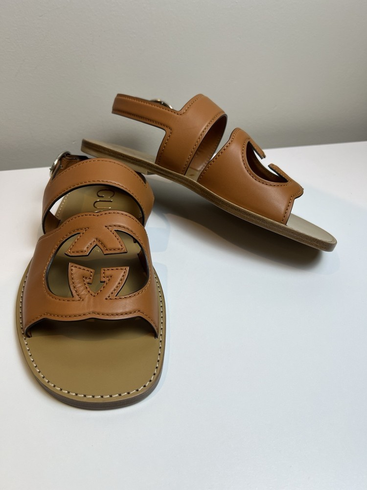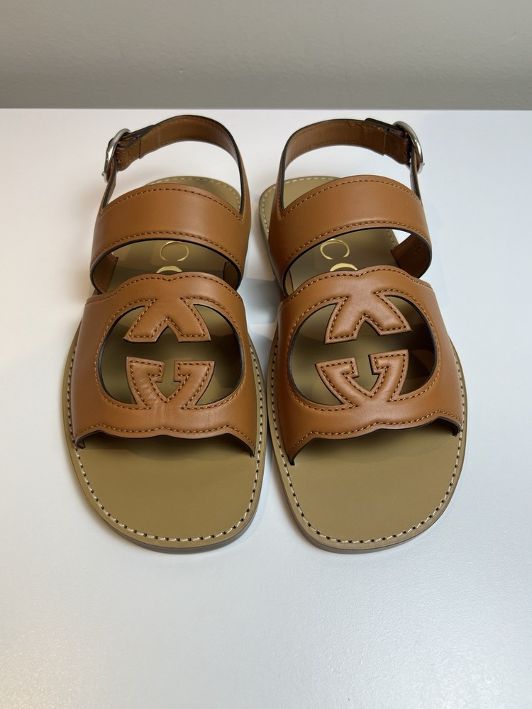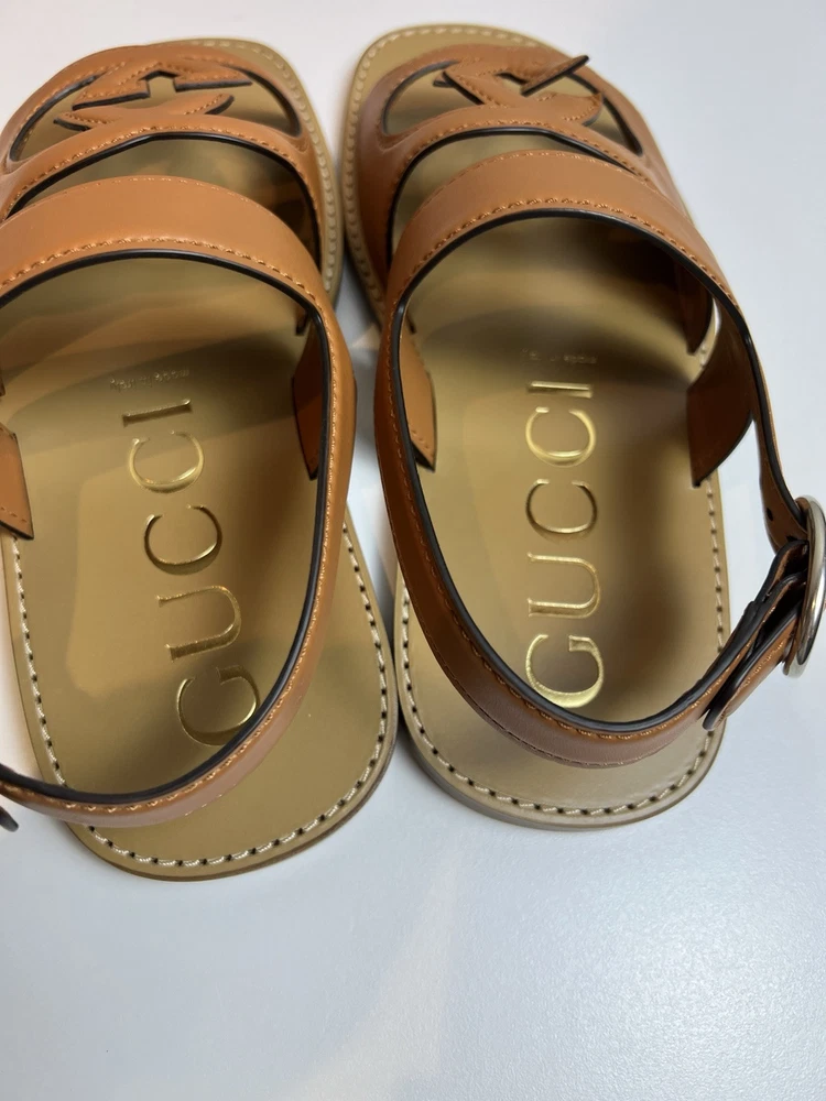Authentic Gucci GG Logo Leather Sandals UK 9 US 9.5