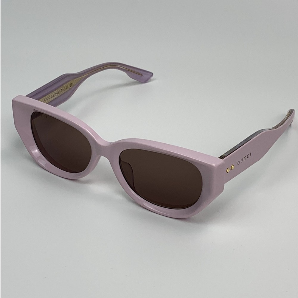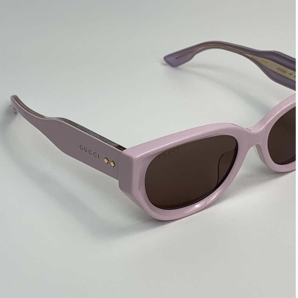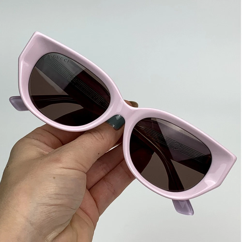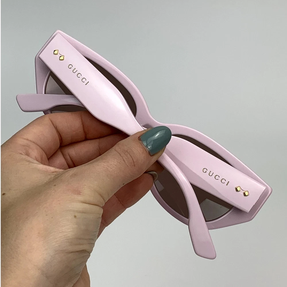 The Gucci GG1532SA 004 sunglasses are a stylish accessory that combines luxury design with functional features. Here are the detailed specifications: Frame Details: Model Number: GG1532SA Color Code: 004 Frame Shape: Cat-Eye Frame Color: Shiny Pink Frame Material: Recycled Acetate Lens Details: Lens Color: Dark Brown Lens Material: Bio-Nylon UV Protection: 100% UVA and UVB protection Dimensions: Lens Width: 54 mm Bridge Width: 19 mm Temple Length: 145 mm Additional Features: Design: The thick, faceted acetate frame plays with volumes and geometries, offering a bold and contemporary look. The temples feature the gold Gucci lettering logo, engraved and enriched by iconic Gucci rivets, adding a touch of luxury and brand recognition to the design. Country of Manufacture: Made in Italy These sunglasses come with a Gucci hard case, satin pouch, cleaning cloth, and authenticity cards.