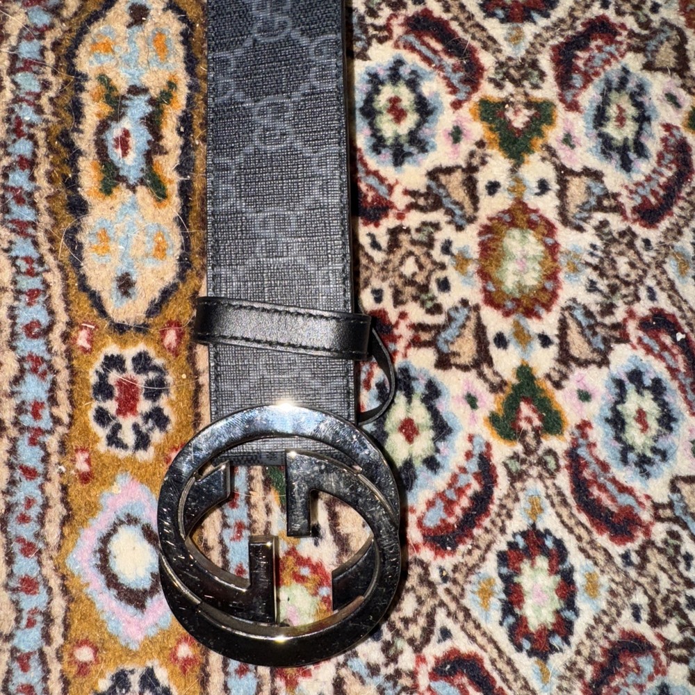 This item is used. Please examine photos before purchase. Priced to sell. Thank you for your time and consideration. The Gucci Men's Leather Belt with G Buckle in Black/Silver is a stylish and sophisticated accessory for men. Made from high-quality leather with a distinctive interlocking pattern, this belt features a sleek G buckle and logo accents. Perfect for both work and dress occasions, this designer belt exudes luxury and class. The size 46 belt is a versatile addition to any man's wardrobe, adding a touch of elegance to any outfit. Take care!