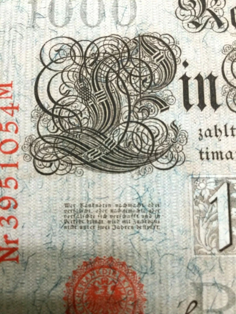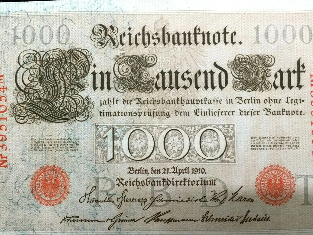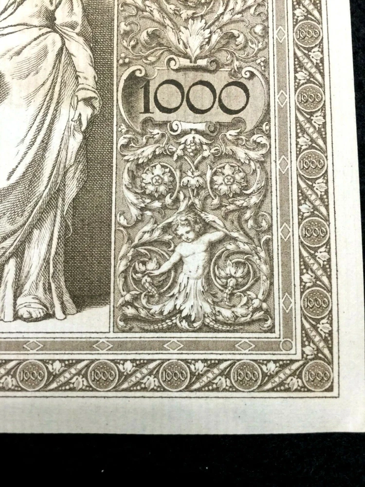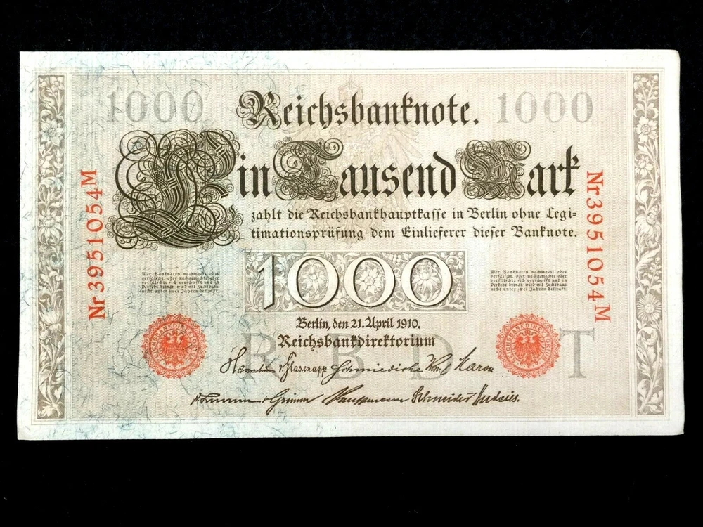 Vintage Authentic Historical 1910 Germany 1000 Mark Bank Note with RED SEAL Authentic German 1000 Mark 1910 bill is one of the antique German bill. Please see all the pictures for details, this is a historical bill with lots of details on both front and backside. You will get one bill as shown in the picture, this bill will have different serial number but in the same good condition The red sealed 1000 Mark Reichsbanknotes dated 1910 were printed until the end of World War I. This is a crucial piece of information when it comes to valuing them. Their value was not covered by gold reserves. These banknotes were printed in very large quantities to fund the war. Great education gift and perfect for currency collectors. We sell only authentic and genuine bills. To offer best price, your bill will be shipped via regular post without tracking number. Please visit our store to see other country bills at nominal price. If you buy any other country bill, we will not charge you shipping cost. We will send you the other bills within the same package. This is a limited promotional offer and we have limited quantity. Please visit our eBay store for other similar items at very nominal price. Please let us know if you have any questions. Thank you!. Collectors Couch (eBay Store)