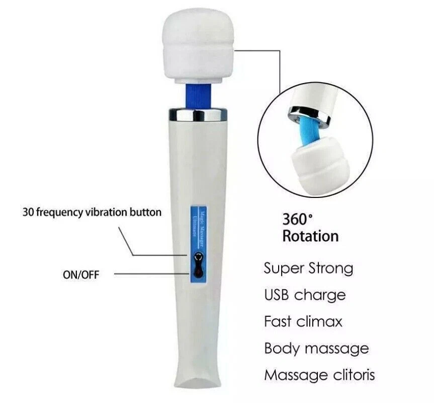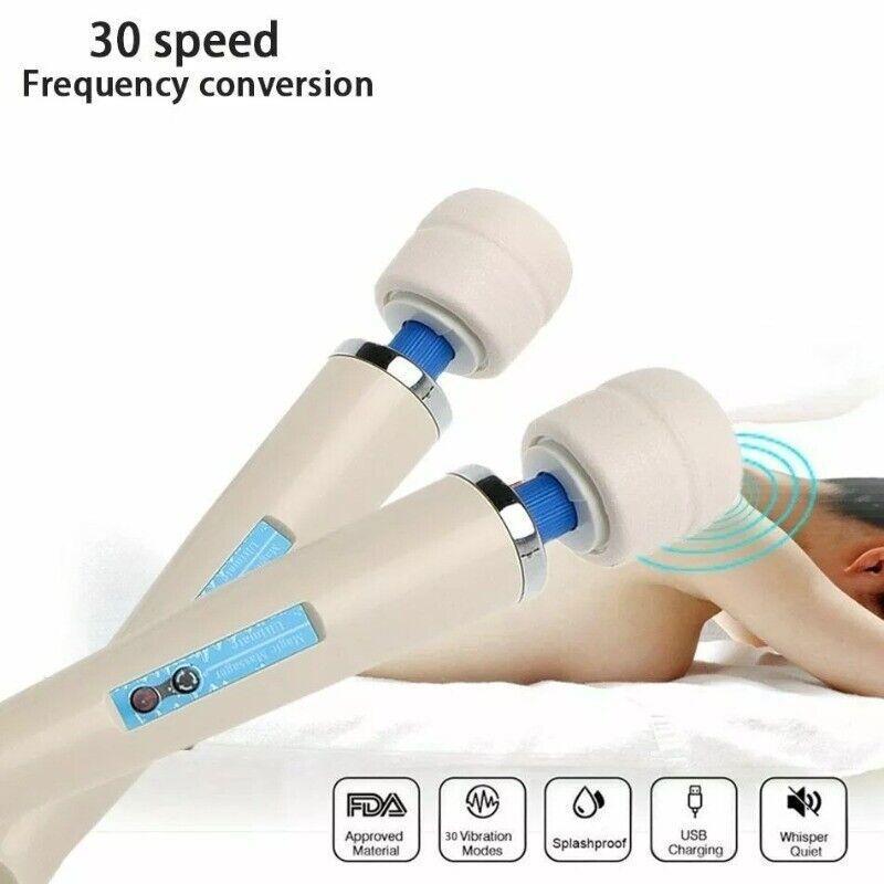 Flexible neck Phthalate free Power supply voltage: 110-250 volts Power frequency: 50-60HZ Vibration frequency: 8000 / min-9000 / min Use time: 1.5h-2h Approx. Dimensions: 32CM length, 6CM diameter [massage head] 30 different vibration settings Package includes: 1 x Massager