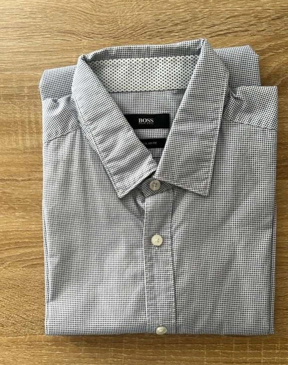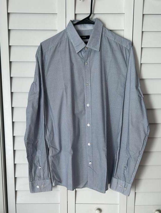 Hugo Boss Men Dress Shirt Blue /White Polka Dots Long Sleeve 100% Cotton Regular Fit Size Large Elevate your wardrobe with this authentic Hugo Boss men’s dress shirt . Designed in a timeless blue micro-check pattern , this shirt combines elegance and comfort. Crafted from 100% cotton , it is lightweight, breathable, and perfect for both professional and casual occasions. Details: Brand: Hugo Boss Fit: Regular Fit Size: L (Large) Color: Blue / White Polka dots Material: 100% Cotton Sleeve: Long Sleeve with button cuffs Closure: Button-up front Style: Dress Shirt / Business Casual Made in China Condition: Excellent pre-owned condition, gently worn. Perfect for office, business meetings, evening events, or casual smart outfits . Keywords: Hugo Boss men dress shirt, Hugo Boss blue polka dots shirt, men long sleeve dress shirt, Hugo Boss regular fit shirt, blue micro check shirt men, men button up cotton shirt, business casual men shirt, designer dress shirt men, men collared long sleeve shirt, Hugo Boss classic dress shirt ⭐ Condition: Excellent Pre-Owned Condition. Please review all photos for details. 💬 Questions Feel free to message me before purchasing — I want you to be 100% happy with your order! 🚚 Shipping: Fast US shipping (1 business day handling). Items are packed with care. Ships Monday–Friday (weekend orders ship Monday). 🏡 Seller Info: Smoke-free & pet-free home. 100% Positive Feedback — buy with confidence. Quick responses. 📸 Photos & Fit: Please review all photos and measurements carefully. Sizing may vary by brand — compare measurements for best fit. Colors may vary slightly due to lighting/screens. 🙏 Thanks for looking! ❤️ I truly appreciate your business!