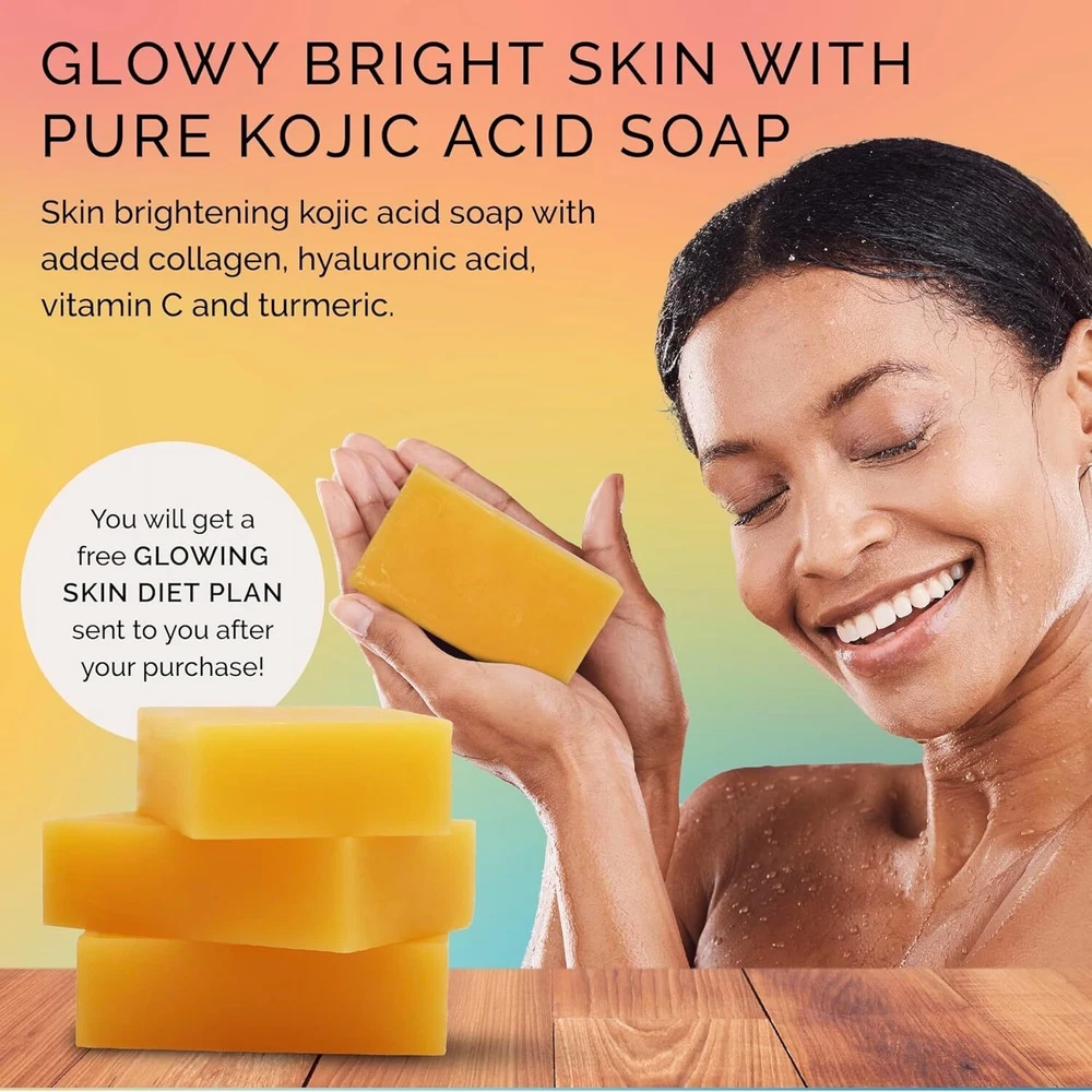 Pure Kojic Acid Skin Brightening Soap with Added Collagen Boost: Our turmeric-infused Kojic Acid soap is carefully crafted with pure, vegan ingredients and enhanced with extra collagen, ensuring the health, radiance, and a vibrant glow of your skin. Vegan, Paraben-Free, SLS-Free: All our ingredients work in harmony to benefit your skin. For a full list of ingredients, including Kojic Acid, turmeric, hyaluronic acid, shea butter, and more, refer to the product description below. Kojic acid, a natural ingredient originating from Japan, is renowned for its powerful brightening effects, aiding in dark spot correction, preventing hyperpigmentation, and promoting a more even skin tone. Experience the transformation with our pure Kojic Acid Turmeric Soap. Usage Instructions: Prior to use, conduct a spot test on your hand. Gently rub the brightening turmeric soap with water and massage it onto wet face and body. Rinse thoroughly. Detailed instructions can be found on the package. Suitable for your face, hands, neck, bikini area, inner thighs, and underarms. Nourish and Revitalize: Elevate your skin inside and out for radiant results. With your purchase of Kojic Acid Soap, receive an exclusive eBook: "Glowing Skin Diet Plan." For any inquiries, please contact our support team. Product Description Natural pure kojic acid soap with added collagen How to use kojic acid soap Usage Instructions: Prior to use, conduct a spot test on your hand. Gently rub the brightening turmeric soap with water and massage it onto wet face and body. Rinse thoroughly. Detailed instructions can be found on the package. Can I use this for body & face? Pure Scentum kojic acid soap is suitable for your face, hands, neck, bikini area, inner thighs, and underarms. Is it vegan? Out turmeric kojic acid soap is Vegan, Paraben-Free, SLS-Free. All our ingredients are pure and work in harmony to benefit your skin. How do I get the ebook? It will be sent to you automatically by email after your purchase. USA handmade bath bombs made from natural quality ingredients How many bath bombs? 4 giant XXL bath bombs How many bath bombs? 6 giant XXL bath bombs How many bath bombs? 6 giant XXL bath bombs Where are they made? Handmade in the USA Where are they made? Handmade in the USA Where are they made? Handmade in the USA