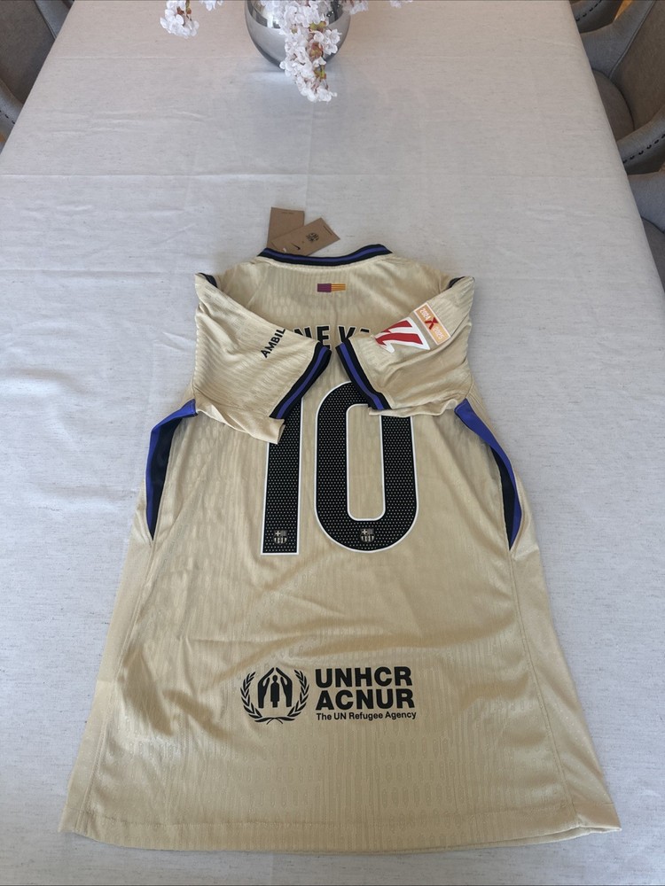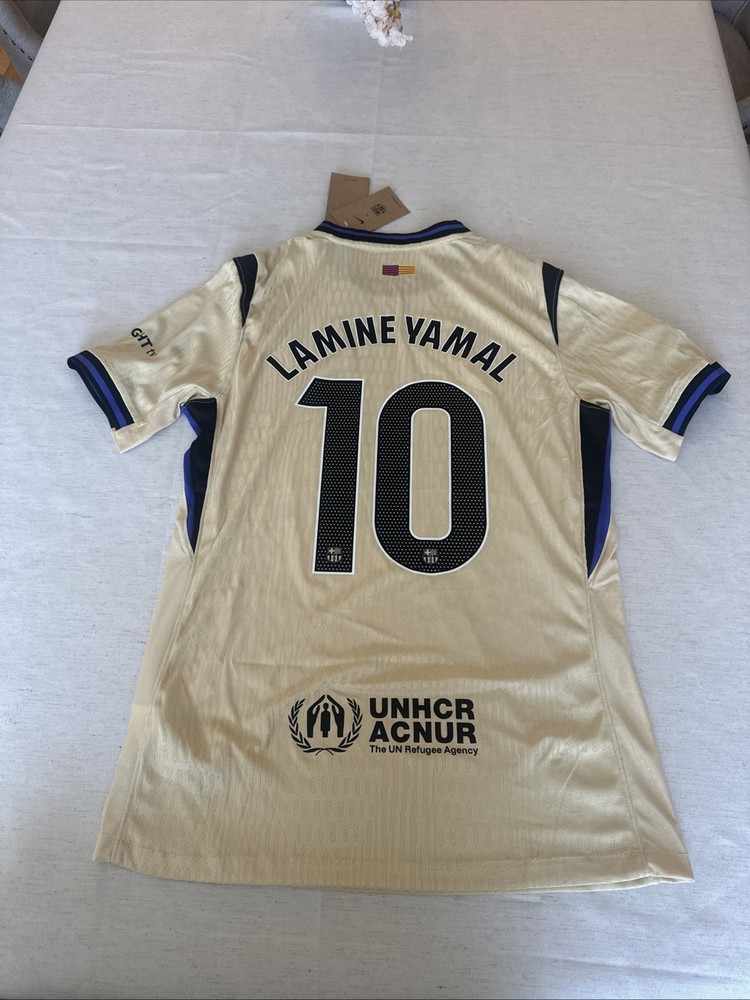 THIS JERSEY IS BRAND NEW WITH THE NIKE TAGS!!! The product is an authentic jersey personalized with the names of Laliga Lamine Yamal Barca and Koby, featuring the iconic Lionel Messi. Officially licensed by Nike and designed for men in size L, this jersey represents FC Barcelona, one of the top soccer clubs in the world. Perfect for fans of soccer and football enthusiasts alike, this jersey is a must-have item for supporters of Messi and Barcelona. Show your allegiance to the team and player with this unique and high-quality fan apparel.