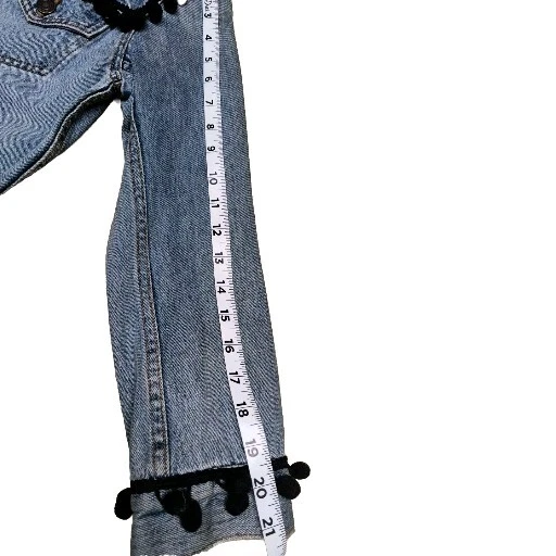 Amazing Marc Jacobs denim jacket. Embellished on all the seams with black pom pom tassels. Size small and the wash is Vintage indigo. I bought this new jacket many years ago. I literally wore it once and put it in my closet. It hasn't been out since. Pretty sure I bought this over 20 years ago. It was kept in a garment bag so it's mine and fresh and clean.