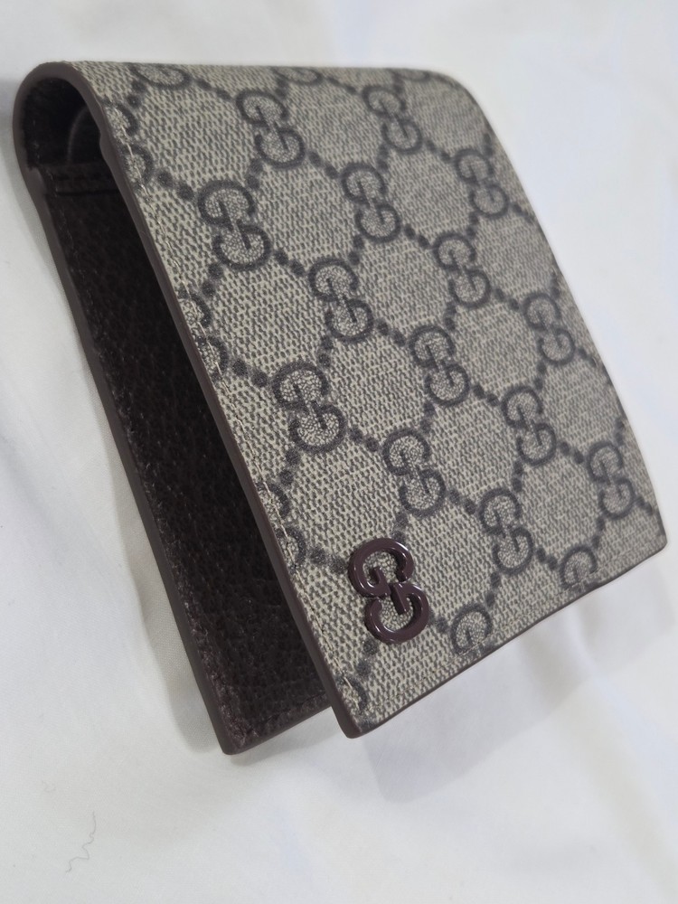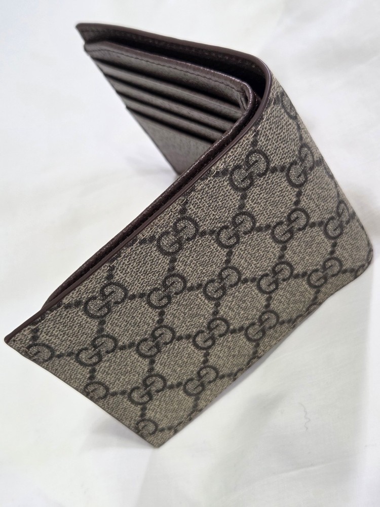 Get it Fast! Same Day Shipping! Last One! Authentic Mens Gucci Brown/Tan Monogram Canvas Bifold Wallet New Mint Condition - Exact Item in Pictures Eight card slots and two bill compartments Open: 8.3"W x 3.5"H Closed: 4.3"W x 3.5"H Made in Italy Brass hardware Includes Box & Dust Bag Ships Priority Mail Get it Fast!