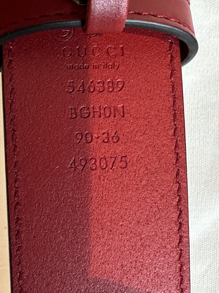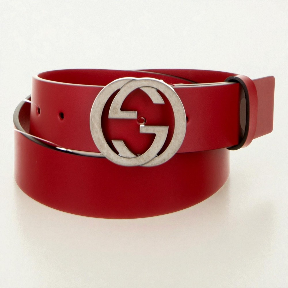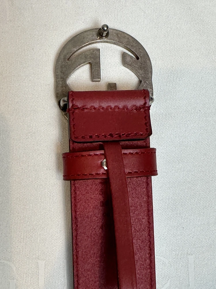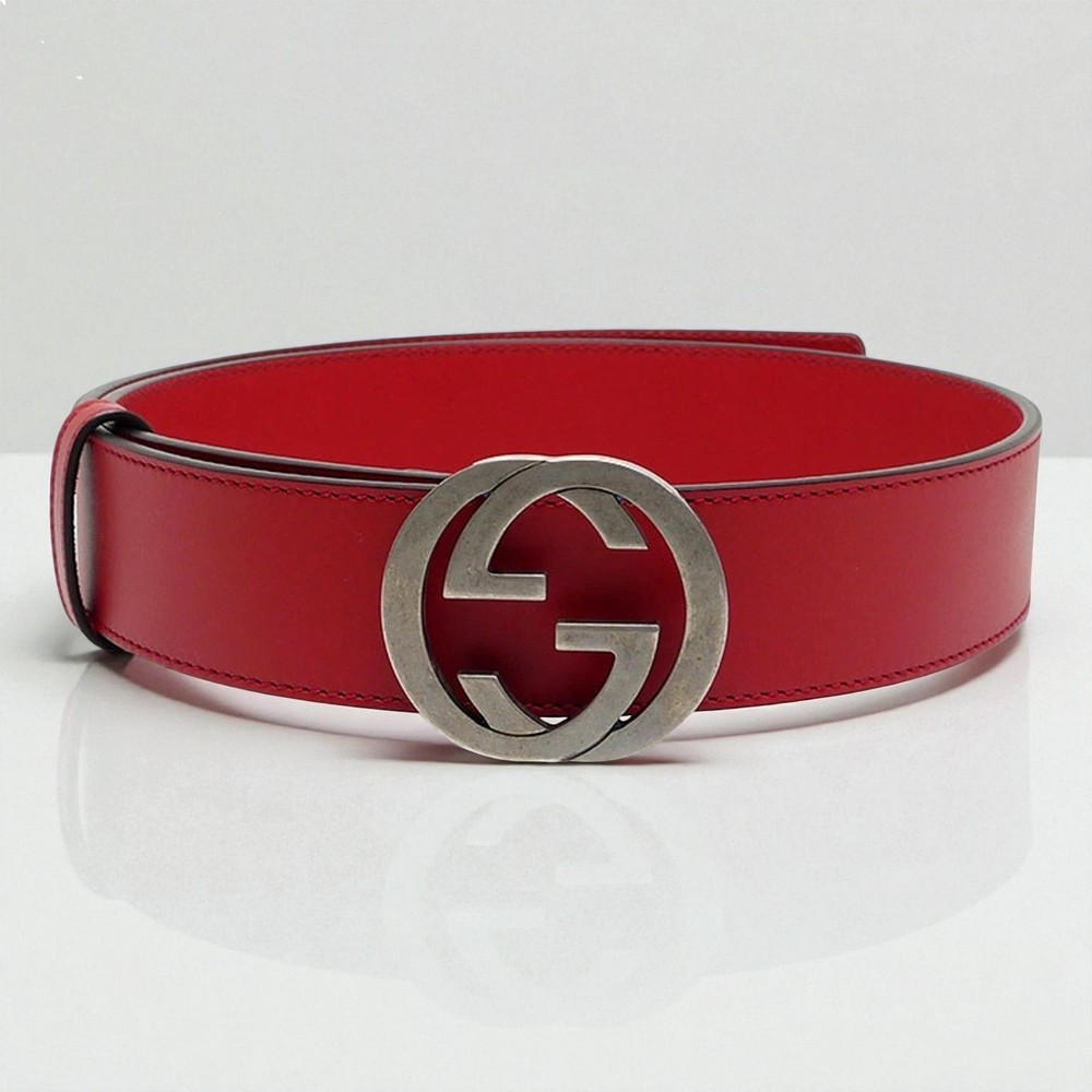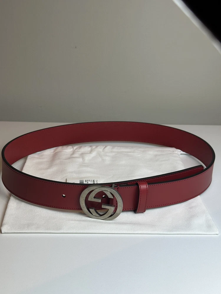 Authentic New Gucci Leather Belt Tinted interlock GG buckle with a matte finish (see photos for details) Color: Red Belt Size: 90 (36) Material: Leather New with tags and dustbag