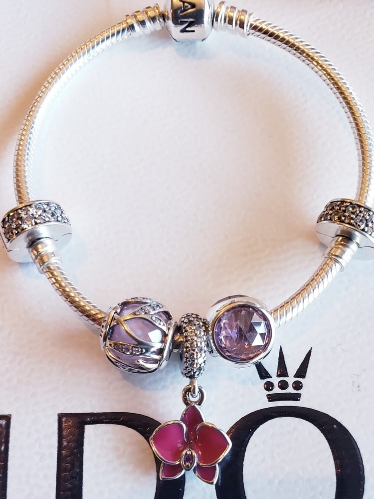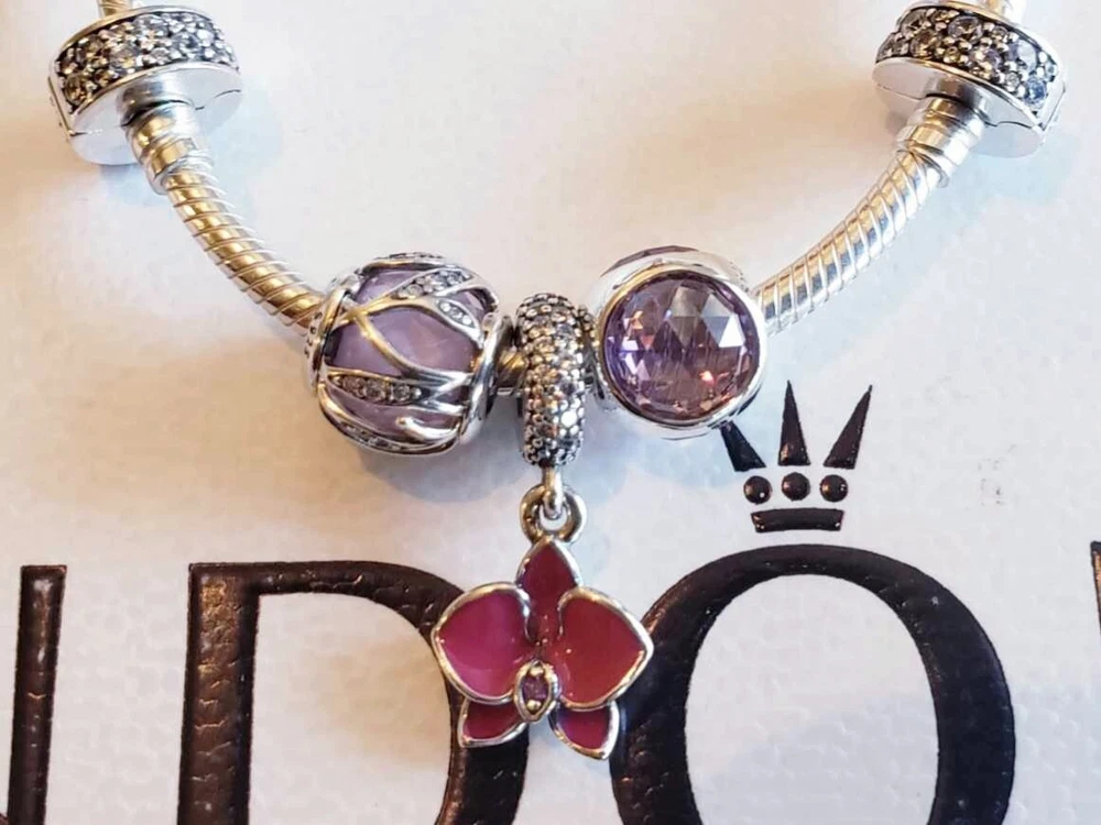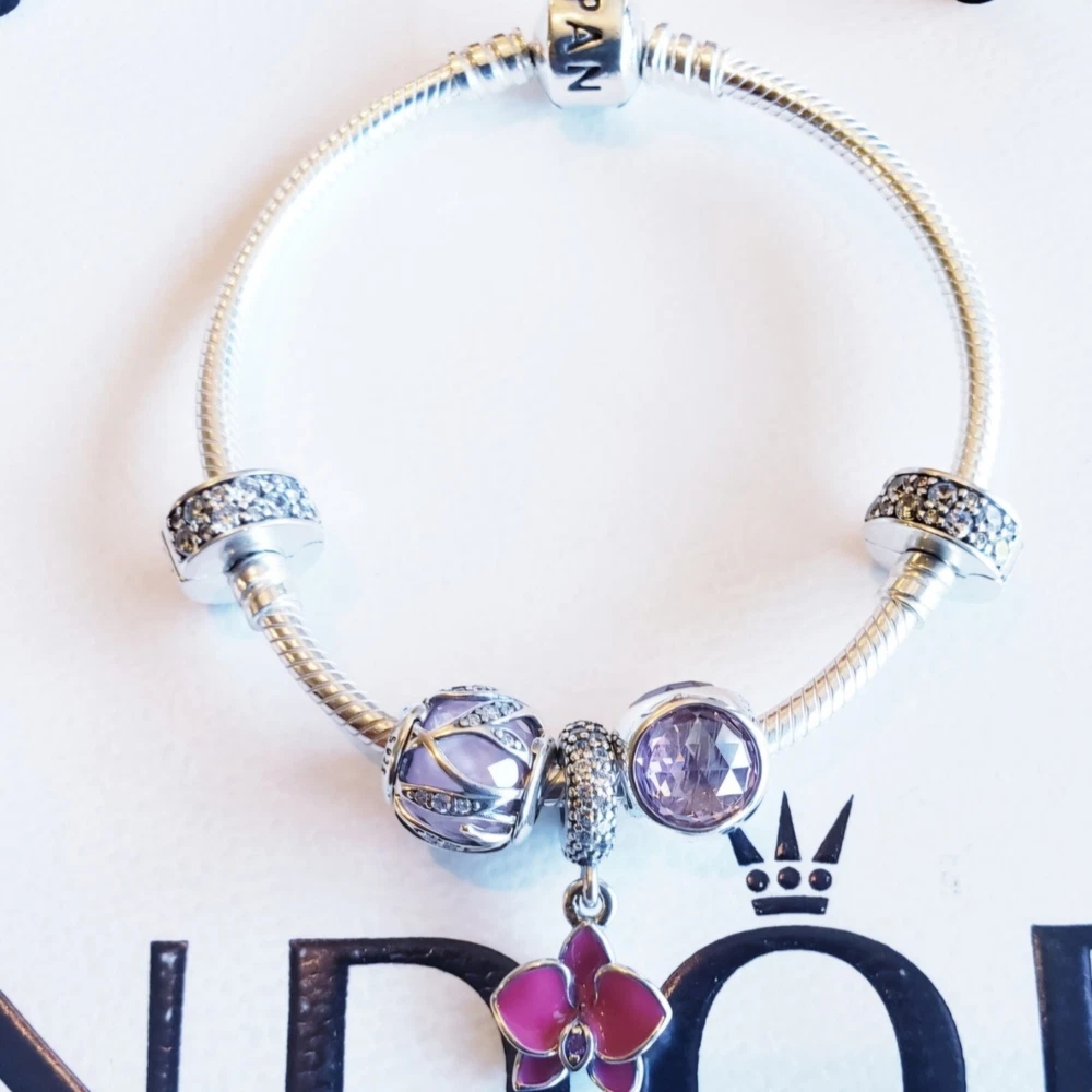 Absolutely love this Pandora bracelet set! The sterling silver pieces are stunning—especially the pink nature charm and orchid dangle. The sparkle from the CZs is gorgeous, and the clips add the perfect finishing touch. Super happy with the quality, and free shipping was a nice bonus. Snagged it just in time—totally worth it!