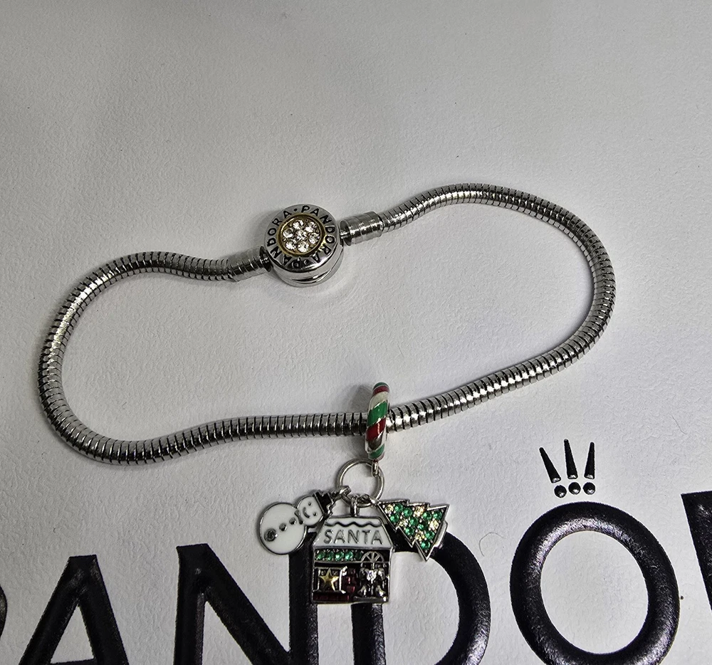 Authentic Pandora Bracelet with Christmas Charm, 7.5 Inches