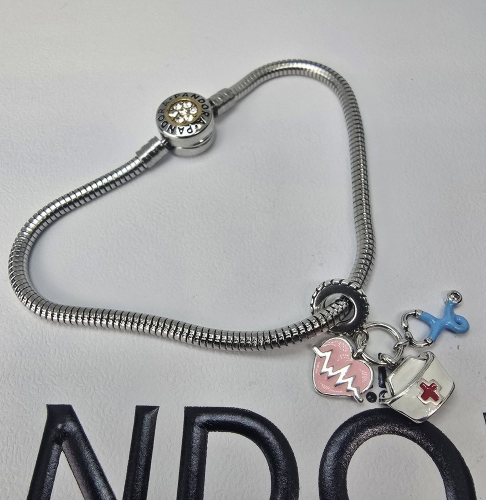 Authentic Pandora Bracelet with Nurse Charm 7.5 Inches