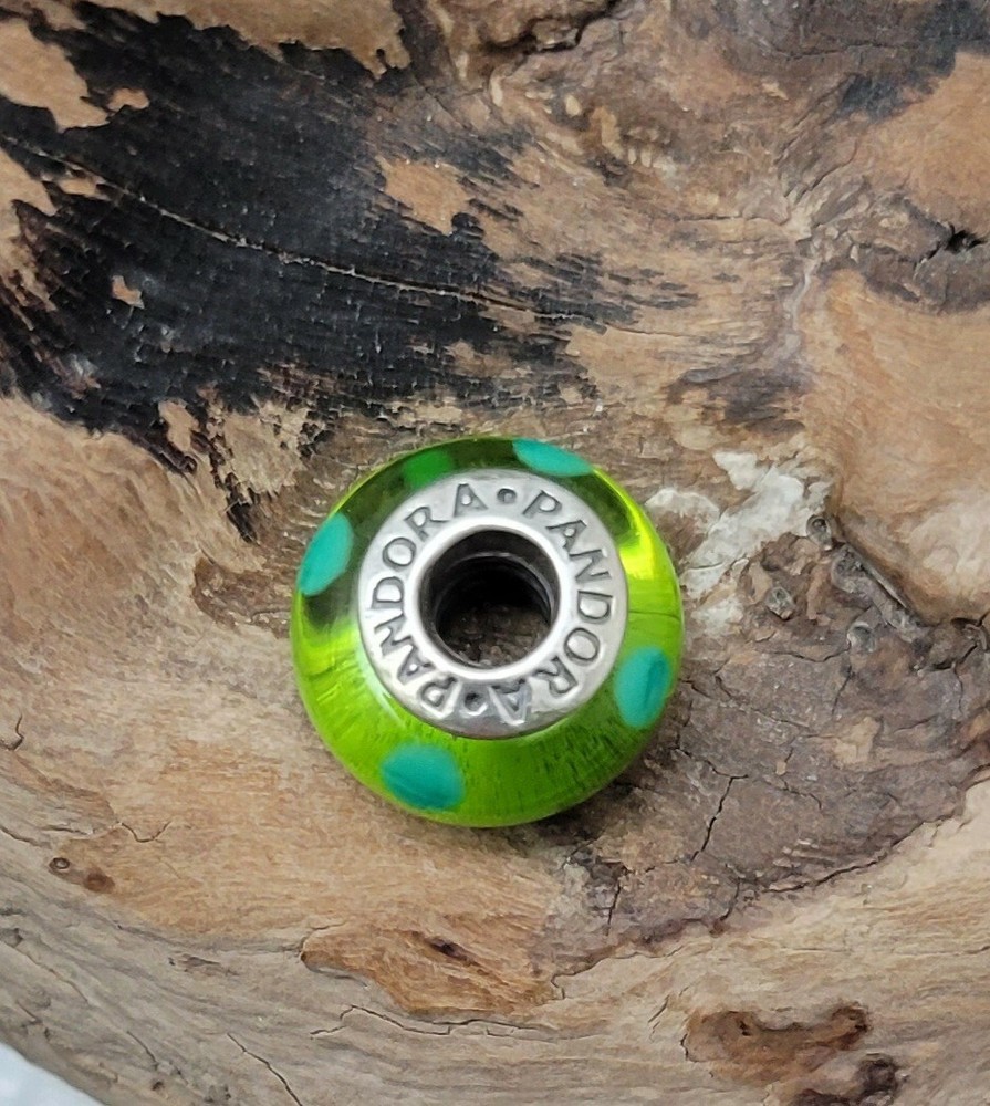 Authentic Pandora Murano Glass Greens Bubbles Charm 925 ALE. Condition is Pre-owned and in excellent condition. Please see all photos. Shipping USPS.