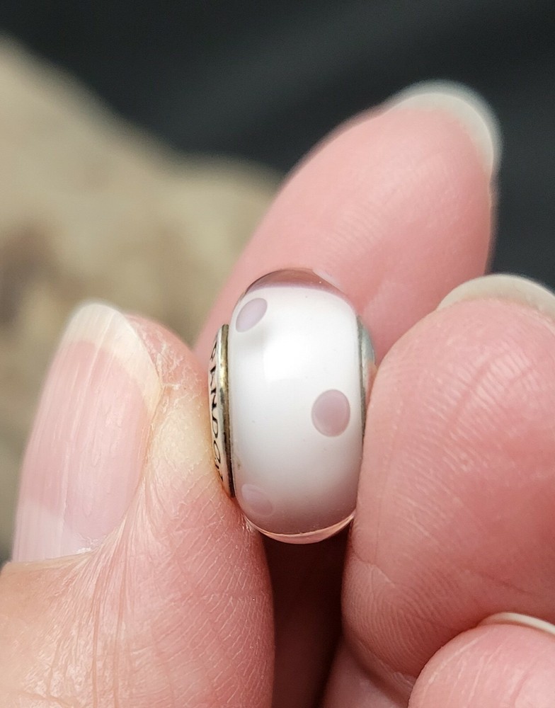 Authentic Pandora Murano Glass White w Lavendar Bubbles Charm 925 ALE. Condition is Pre-owned and in excellent condition. Please see all photos. Shipping USPS
