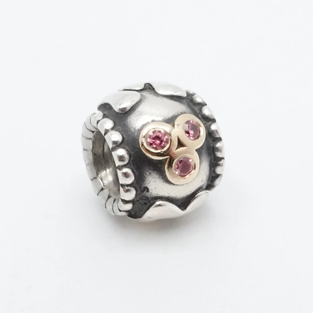 Metal: Sterling Silver Setting Style: Bezel Main Stone: Cubic Zirconia Theme: Family & Friends, Love Main Stone Color: Pink Type: Charm Seller Notes: “Great Condition. Normal tarnish. Signs of scratches/dent. Hallmark has worn off.” Metal Purity: 925 Brand: PANDORA Main Stone Shape: Round Shape: Round Occasion: Birthday, Mother's Day Style: Charm Charm Type: Bead Main Stone Creation: Simulated Base Metal: Silver Color: Silver