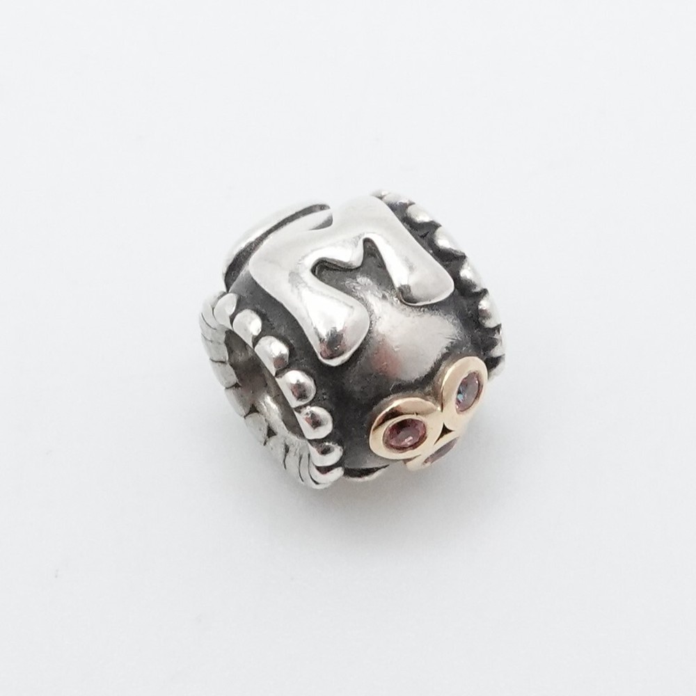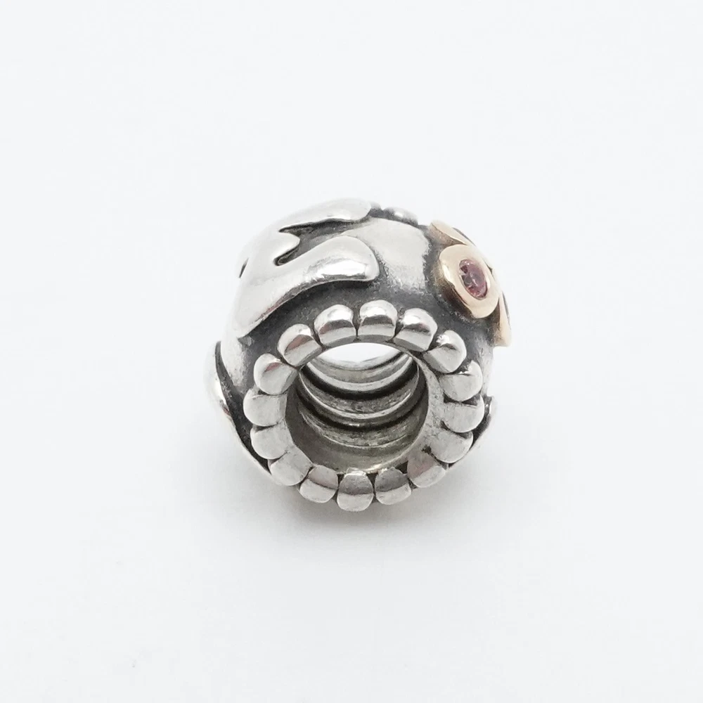 Authentic Pandora Sterling Silver & 14K Gold Mom Family w. Pink CZ Bead Charm