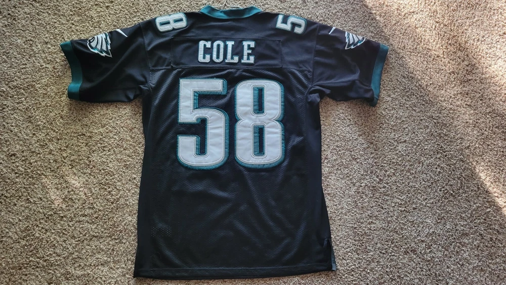 Philadelphia Eagles Trent Cole Nike Men's Black Jersey Med Size 44. 22 inches across chest LAST ONE!!! I only have this one in this color and size. Everything stitches, number, Logo, name