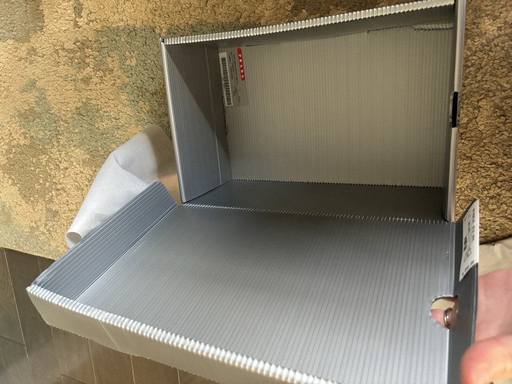 HomeAuthentic Prada Gray Shoe Storage Box with Dust Bag 14x9 Smoke Free Home