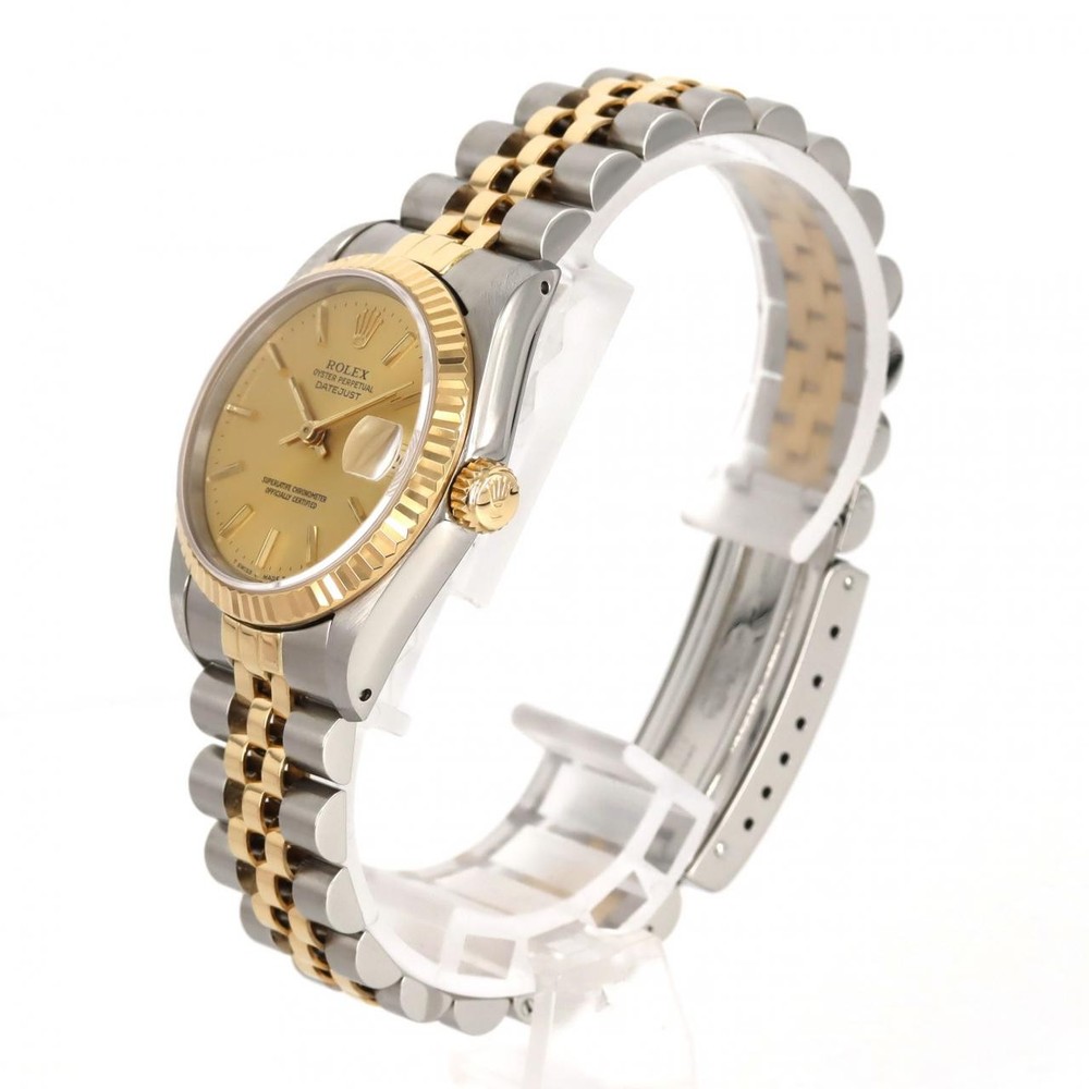 Authentic ROLEX Datejust 68273 SSxYG Automatic #R #260-007-561-0661 Authentic ROLEX Datejust 68273 SSxYG Automatic #R #260-007-561-0661 Condition Rank A New Brand new Rank S Acquired from individual in not used condition. Rank A Excellent condition. Slightly used. Rank B Fair condition. There are some scratches, stains. Rank C Obviously used. There are certain scratches, stains. Accessories Genuine Box ActualSize Case diameter: 30mm Max Wrist size: 17.5cm AdditionalInfo Automatic waterproof Brand ROLEX Carat CenterStone Clarity Color Dial Colors: Gold ConditionDescription ConditionRank A Cut Features Gender Unisex Material Case: SST x Yellow Gold Bracelet: SST x Yellow Gold Model MPN 68273 Repaire Size Case diameter: 30mm Max Wrist size: 17.5cm Stone Style Weight Description There is a scratch on the hands. There are some minor scratches, but it is in good condition. Calendar date double rotation. R number (manufactured around 1987-1988) We have conducted an overhaul and exterior finishing. Accessories may have scratches, stains, or signs of aging. Luxury Bags Wallets & Accessories Jewelry Watches Please Read Before Order About Customs Import duties, taxes, and charges are not included in the item price or shipping cost. These charges are the buyer's responsibility. Please check with your country's customs office to determine what these additional costs will be prior to bidding or buying. We are not acceptable for false declaration of prices and any other falsified information. Please pardon us if some items are sold out We sell on multiple venues such as eBay, and our website/physical retail stores. As a result, orders will be fulfilled on a first-come first-served basis. We apologize for the inconvenience and we thank you for your understanding. You will be hearing from us if an item is already sold elsewhere in a timely manner. Because of the time difference, please expect delay in response. Condition The damages are described and shown with the pictures as much as possible, but we are not able to cover all of the damages on our items. Ranking of Condition is only for the item not included packaging stuffs, guarantee card and tags. Payment & Shipping Payment We accept PayPal only. Cancelation Please pay within 3days after you purchase. Your order will be canceled if we don’t hear from you. Shipping and Handling We only ship to PayPal registered address after payment is cleared by PayPal. Handling time varies between 3-10 business days depending on items location. All of our items will be shipped/delivered by FedEx unless otherwise notified. About Customs Import duties, taxes, and charges are not included in the item price or shipping cost. These charges are the buyer's responsibility. Please check with your country's customs office to determine what these additional costs will be prior to bidding or buying. We are not acceptable for false declaration of prices and any other falsified information. Return Policy Returns Please contact us within 3 days after receiving the item if you would like to return the item. If you wish to return, please contact us first through messages. Returned item must be kept in good condition for full refund. Buyer need to pay for return shipping. We are not acceptable for money back for duties paid. Size Table About Size The size of the item is measured by our professional stuff. The size of item is Japanese size. 1cm ≈ 0.39 inch Ring Size About Authenticity About US 100% Authentic Guarantee Komehyo is the largest reseller of pre-owned luxury brand items in Japan. Our expert appraisers are highly experienced and we do not deal with fake/counterfeit products. Learn more about us: We are listed on the Tokyo Stock Exchange. Anti-counterfeiting measures Komehyo is a member of the Association Against Counterfeit Product Distribution(AACD). AACD’s goal is to create a sound market for genuine brand products by eliminating counterfeit and fraudulent products from the market.