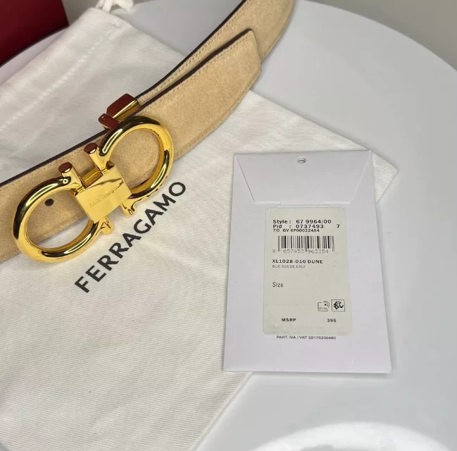 Accents: Buckle Theme: Classic, Designer Style: Dress Belt, Work Belt Material: Suede Department: Men Size: 42 Belt Width: 34mm Type: Belt Pattern: Solid Brand: Salvatore Ferragamo Size Type: Regular Country/Region of Manufacture: Italy Color: Beige Features: Adjustable