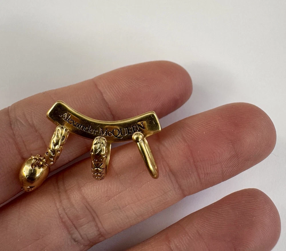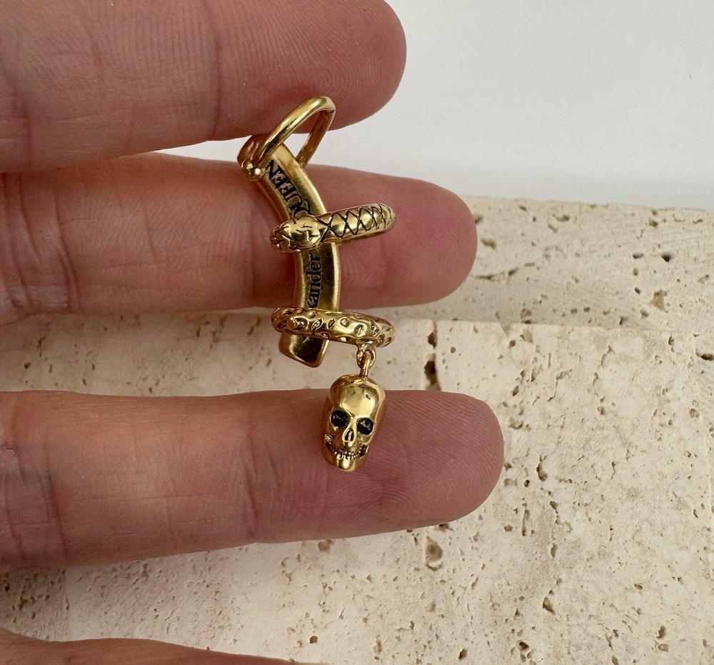 Alexander McQueen ear cuff in antique gold toned metal with iconic skull detail. Authentic. Unisex. For left ear. It will add a modern edgy touch to any outfit. Sold with plain pouch. Happy to combine postage.