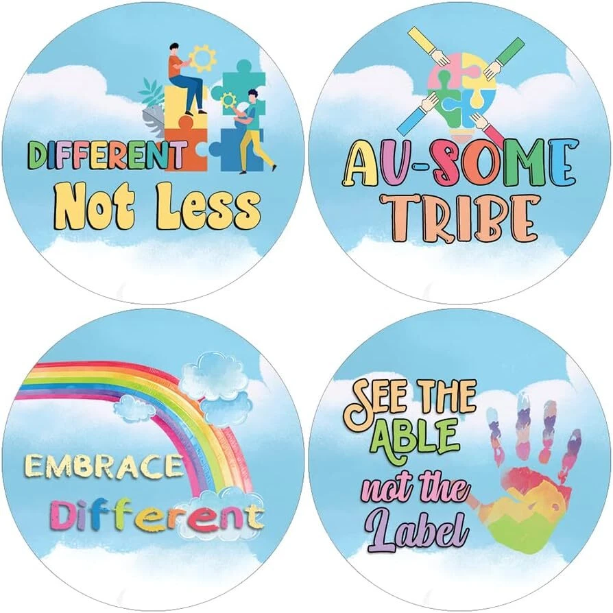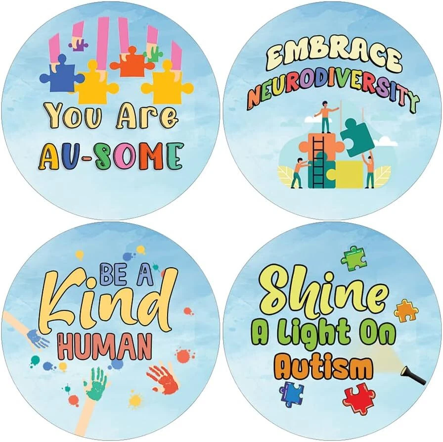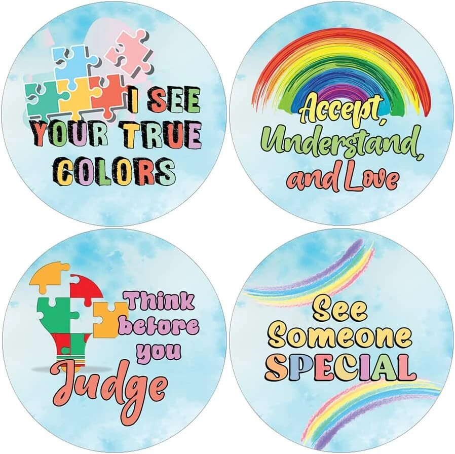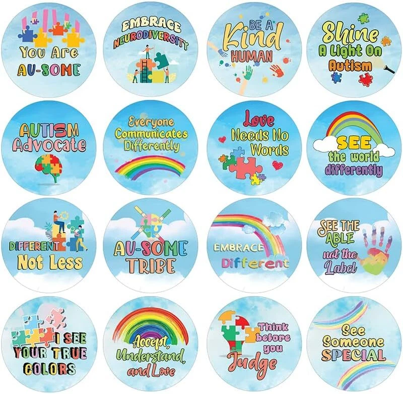 16 UNIQUE DESIGNS INSPIRING STICKERS FOR YOUR DIY PERSONALIZED DECORATIONS - These colorful and uniquely inspiring round shaped stickers are the best tool for DIY decoration and personalization of your belongings. GREAT STOCKING STUFFERS, SCHOOL CORPORATE TEACHING SUPPLEMENTARY MATERIALS, AND INCENTIVE GIFTS - Great rewards giveaways for Boys Girls, Kids, Teens, Children, Adults, Professionals. A perfect design to give during guidance sessions, classroom activities, school giveaways, birthdays, anniversaries, family day, and any other special occasions. MADE WITH DURABLE AND WATERPROOF MATERIALS - There is a lamination or coating to make the stickers high water resistant, and WILL NOT fade from the water. The stickers can stick it anywhere you like, and it sticks there and lasts a long time. A COLORFUL AND DECOR STICKER DECAL - Each sheet with 16 individual round stickers. There are 10 Sheets, with a total of 160 pieces of stickers. STICKER SIZE: 1.5 INCHES IN DIAMETER Autism Advocate Stickers (10 Sets X 16 Designs) COLORFUL AND COLLECTION OF TEXT STICKERS • Well designed. • Very encouraging. • Self-adhesive. Autism Advocate Stickers (10 Sets X 16 Designs) are super fun to collect; you can't have just one! That's why you will find a selection of stickers right here. Each package comes with different stickers in a variety of designs. Stick them here, stick them there, stick them everywhere! Everyone will love these self-adhesive stickers. These colorful stickers are perfect for any adults and these come with very inspiring messages and bright pictures. A fun, inexpensive way to add a decorative, notes, and stationery. Delight yourself with uplifting messages designs that are very encouraging. Autism Advocate Stickers (10 Sets X 16 Designs) perfect for giveaways, behavior incentives, prizes! These stickers are acid-free, nontoxic, and safe for use on photos. This product comes with a 60 days money back guarantee. You can return them to us for a full refund.
