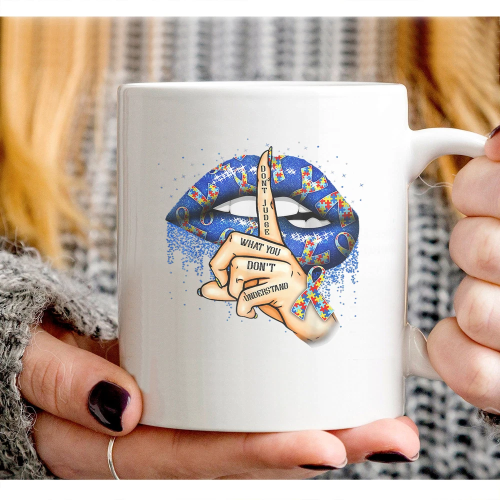 Autism Lips Don't Judge What You Don't Understand Autism Mom Mug Coffee Mug Tea
