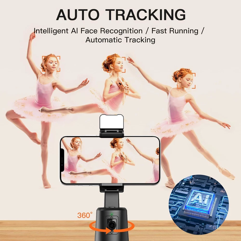 Auto Face Tracking Tripod - Tracking Phone Holder Smart Face Tracking Phone for ??????????Unleash Your Creativity??? Elevate your content creation game with the Smart Face Tracking Phone Tripod Stand. Capture stunning videos and photos with its advanced auto face tracking technology, ensuring you're always in the frame. Dominate social media platforms and leave your audience mesmerized by your captivating content. ??????????Effortless Versatility??? With 360?? rotation and smart shooting capabilities, this face tracking tripod adapts to your every move. Whether you're live streaming, vlogging, or video conferencing, it effortlessly tracks your face and body, delivering smooth and professional-looking footage. Stand out from the crowd and showcase your unique style with ease. ??????????Seamless Control??? No need for complicated apps or manual adjustments. This auto tracking phone holder intuitively follows your movements, thanks to its built-in AI-powered camera and image processor. Simply set it up, and let it do the work for you. Stay focused on your content creation while this smart face tracking phone tripod stand takes care of the rest. ??????????Superior Stability??? Say goodbye to shaky footage and blurry images. The face tracking tripod for iphone provides rock-solid stability, ensuring your videos and photos are always crisp and clear. Its sturdy construction and anti-slip grip keep your device securely in place, allowing you to unleash your creativity without any distractions. ??????????Unmatched Convenience??? Designed for on-the-go creators, this moving tripod is lightweight, portable, and easy to set up. Whether you're shooting indoors or outdoors, its compact size and adjustable height make it the perfect companion for any adventure. Take your content creation to new heights and capture stunning moments wherever you go.