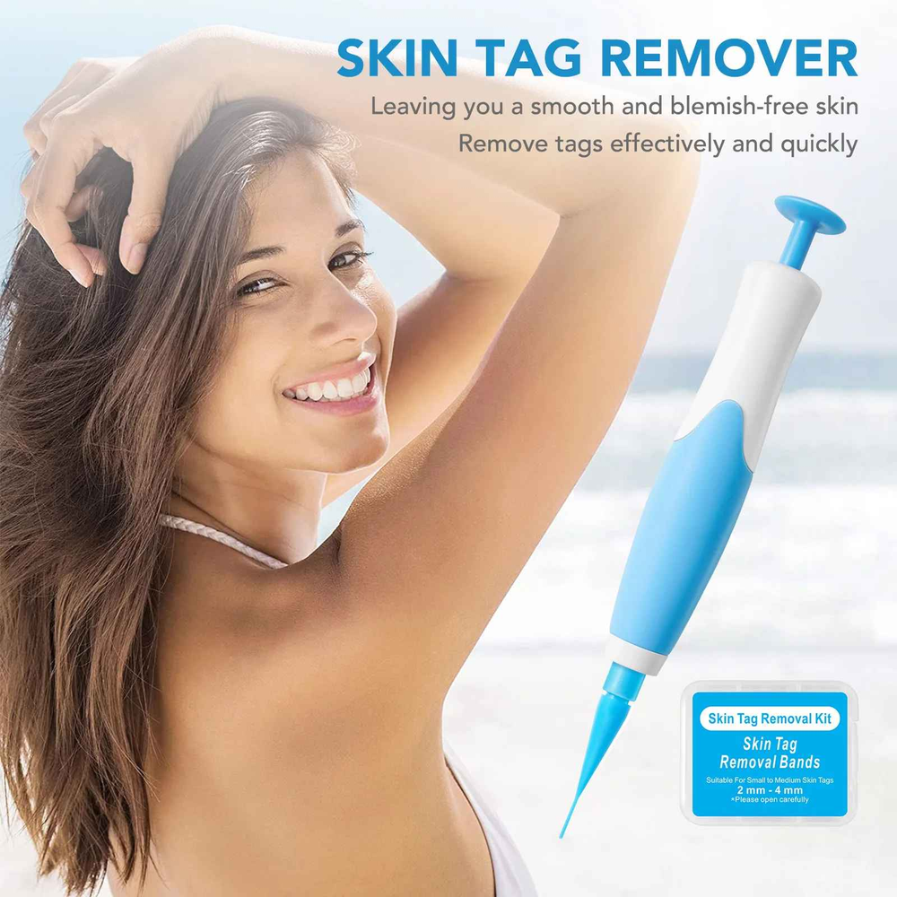 Description Features: 1. It is a innovative design allowing for quick and safe skin tag removal, no burning and freezing, easy to operate with one hand. 2. The pen works by stopping the skin tags blood supply and results can be seen within just a few days of applying a band. 3. Suitable for all skin tags that are small to medium size. It is suitable for skin tags with a widest point of 2-6mm. If the skin tag is smaller than 2mm, the band may not be able to grip the skin tag tightly. 4. It's designed to be used on skin tags on the face and body but we wouldn't recommend using it around the sensitive eye area. How to Use: 1. Clean the skin tag and the surrounding area with one of the provided cleansing swabs. 2. Attach the loader onto the end of the device then place a band onto the tip of the loader and roll it down and onto the device. 3. Remove the loader from the device. 4. Position the hollow end of the device over the skin tag. 5. Once it s level with the skin s surface push the button to release the band. 6. The band will now be held securely in place where it will remain until the skin tag has dropped off. Note: 1. Skin tag removal kit is designed to remove skin tags on all parts of the body excluding sensitive areas such as the eyelids, genitals etc. 2. Please open the box of bands carefully as the bands are very small and clear in colour if the box appears empty, run your finger along the edges and corners of the open box to feel for the bands. 3. If the blood supply has not been stopped enough, the skin tag is unlikely to fall off and may become irritated or slightly painful. In the event of this happening we would recommend removing the band. 4. Should the band need to be removed for any reason we advise asking someone to help with this process. To remove the band, we recommend gently grabbing the band using tweezers to stretch the band over the skin tag. class="extend--iframe--to7hHIV" data-spm-anchor-id="a2g0o.detail.0.i2.7fb3pV5VpV5Vpf" data-spm-act-id="a2g0o.detail.0.i2.7fb3pV5VpV5Vpf" style="box-sizing: border-box; -webkit-tap-highlight-color: transparent; outline: 0px; margin: 0px; padding: 0px; height: 354px; position: absolute; top: 0px; visibility: hidden; width: 1000.5px; z-index: -1;">