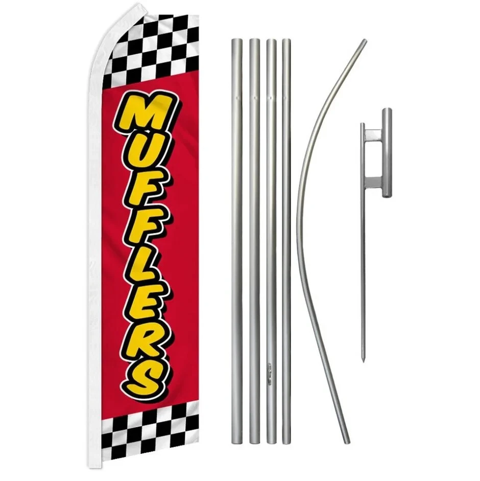 Auto Muffler Brakes Services Variations Swooper Advertising Banner Flag Pole Kit